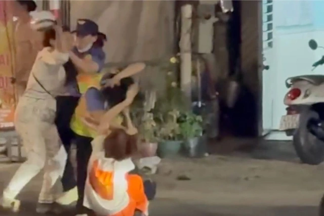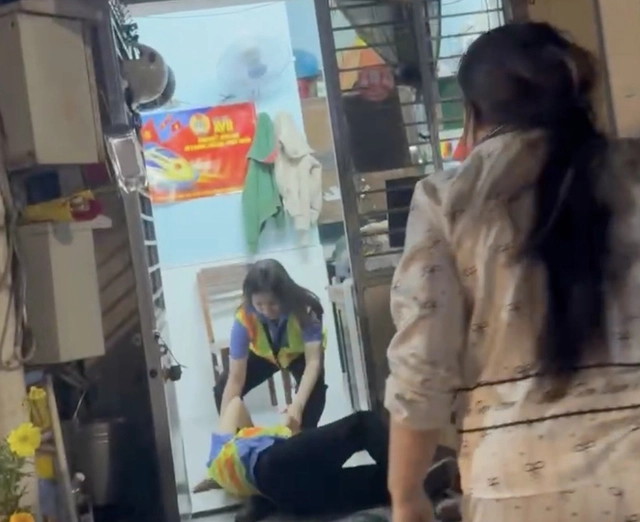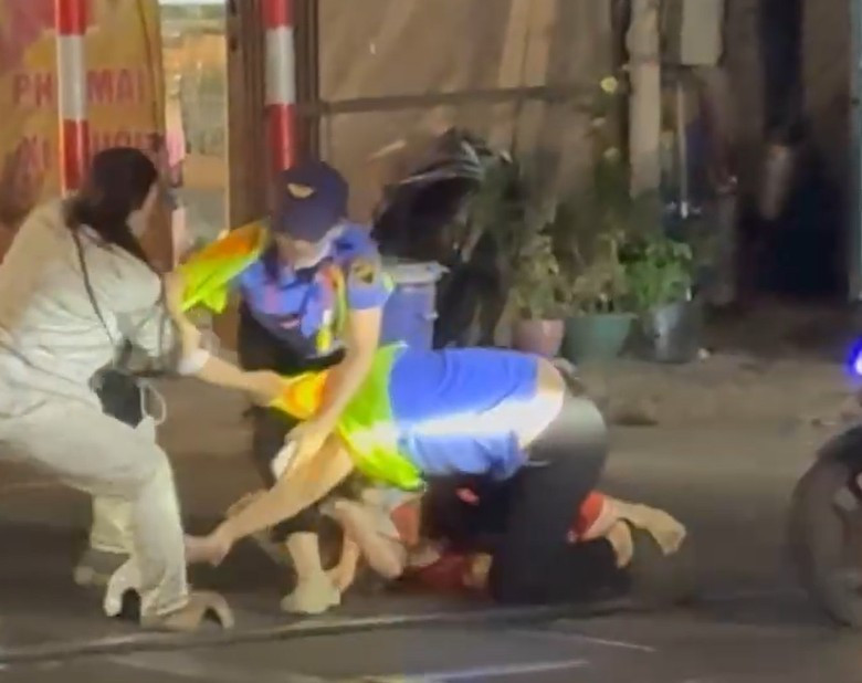 Chưa dừng lại, sau khi đoàn tàu đi qua, người phụ nữ bất ngờ lao vào hành hung hai nữ nhân viên. Một người thân đứng gần đó cũng tham gia, túm tóc chị Thúy kéo ngã xuống đường.