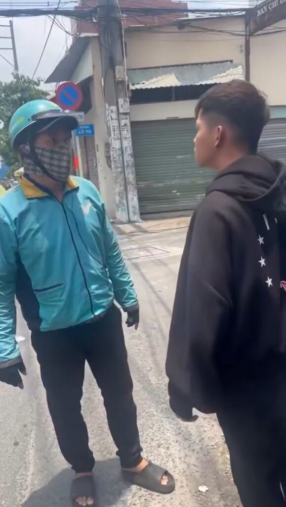 Theo clip lan truyền trên mạng xã hội cho thấy thời điểm trên, nam thanh niên mặc áo xe ôm công nghệ khi chạy đến giao lộ trên thì xảy ra mâu thuẫn cãi vã, lời qua tiếng lại với hai nam thanh niên đi xe máy.