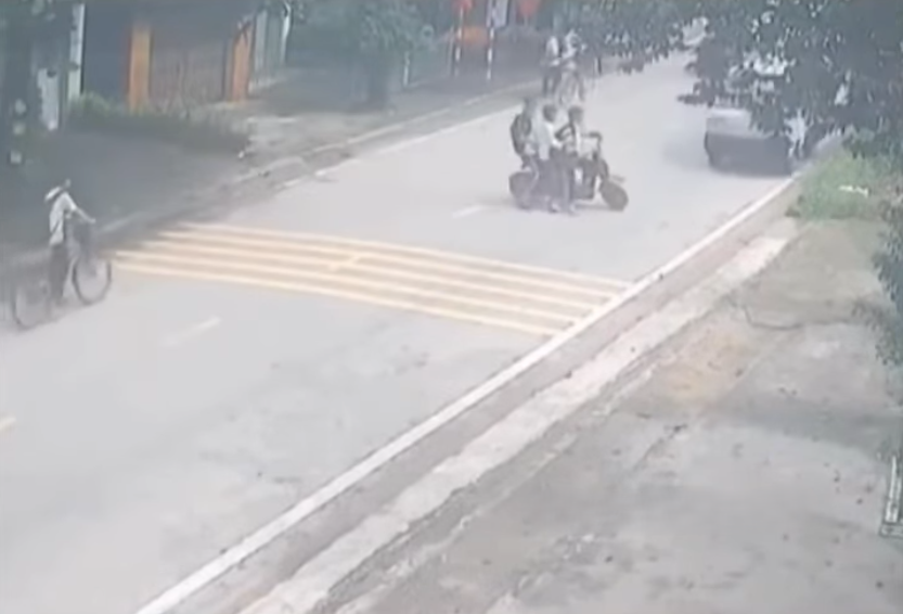 Tại khu vực gần cổng trường đã xảy ra một vụ tai nạn giao thông nghiêm trọng liên quan đến ba học sinh đi xe điện.