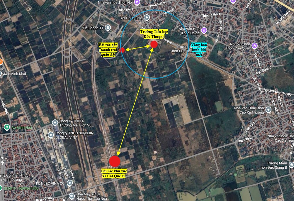 - Bán kính 200m có 1 bãi rác nhỏ khu vực gần thao trường quân sự, cạnh đó có 1 khu tập kết rác của doanh trại quân đội được xử lý bằng biện pháp đốt.