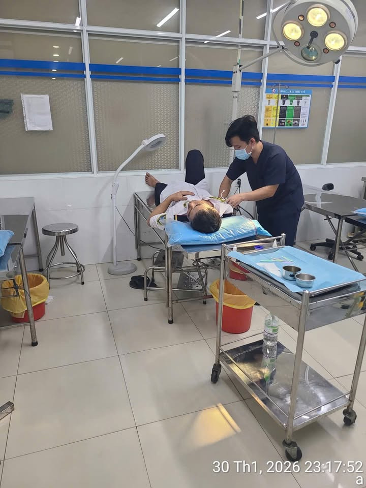 Nạn nhân được người dân đưa đi cấp cứu trong tình trạng gãy xương sườn trái số 5, 6, cùng đa chấn thương vùng mặt, cổ, tay và chân.