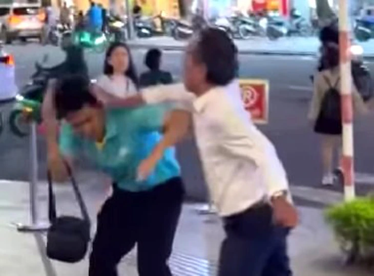 Tuy nhiên người đàn ông dùng tay và điện thoại đánh nhiều lần vào tài xế taxi khiến anh này ngã xuống đường. Sự việc chỉ dừng lại khi có người đi đường can ngăn.