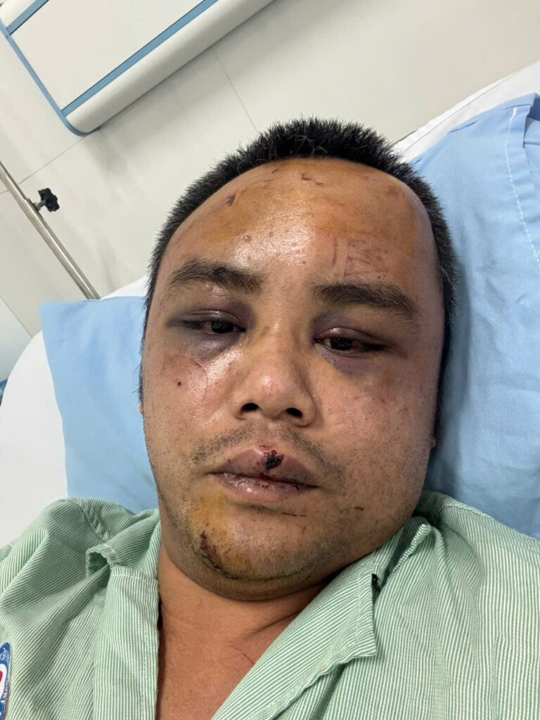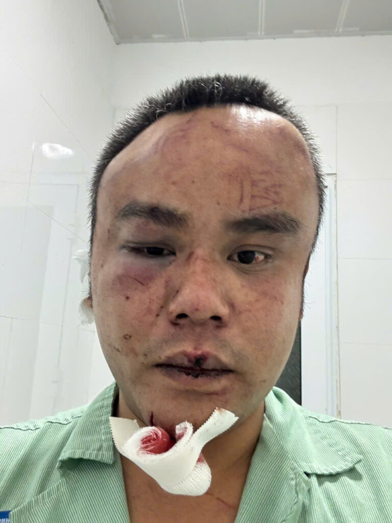 THƯƠNG TÍCH NGHIÊM TRỌNG: Chồng tôi phải khâu nhiều mũi ở miệng, cằm, tai, và quan trọng nhất là bị GÃY 7 XƯƠNG SƯỜN và GÃY NGÓN TAY.