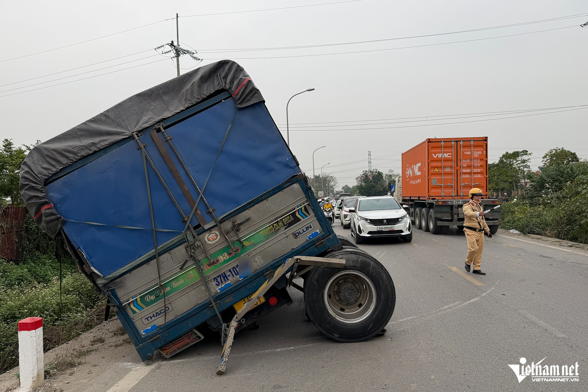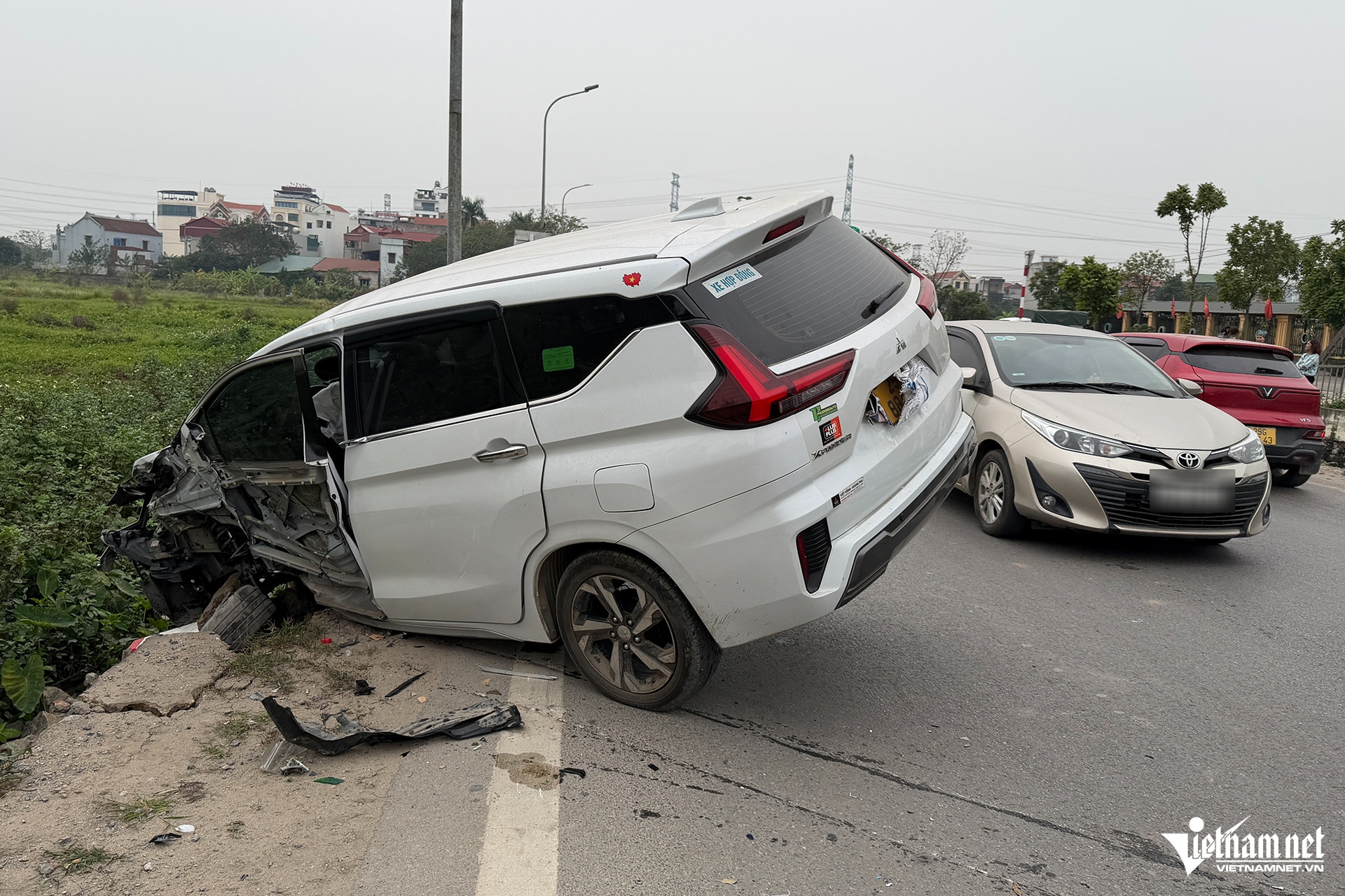 Cú va chạm mạnh khiến ô tô tải xoay ngang, lao xuống vệ đường, phần thùng xe va vào ô tô con mang BKS 36A-978.XX đang lưu thông cùng chiều. Cùng thời điểm, ô tô BKS 29H-884.XX tiếp tục đâm vào đuôi xe con mang BKS 37A-299.XX rồi lao xuống vệ đường.
