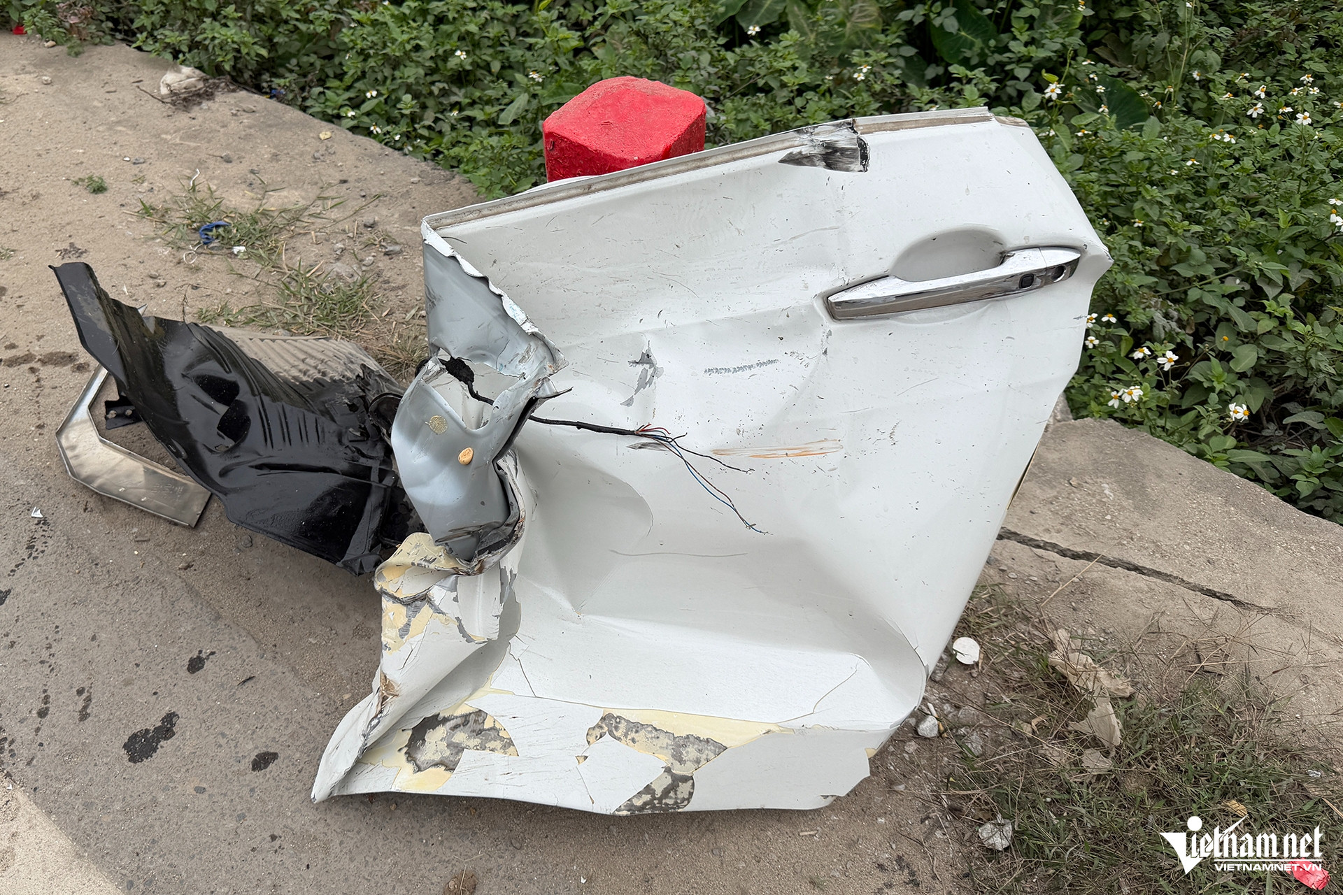 Ô tô con BKS 29H-884.XX bị hư hỏng nghiêm trọng phần đầu, rách cánh cửa và bung hai túi khí trong xe. Thời điểm xảy ra tai nạn, trên xe có 2 người, may mắn không ai bị thương.