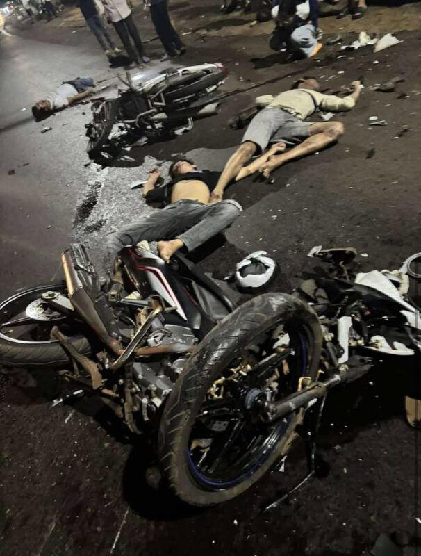 Theo thông tin ban đầu, khoảng 20h50, hai xe máy lưu thông theo hai hướng ngược nhau với tốc độ cao đã va chạm trực diện. Hình ảnh từ camera an ninh của nhà dân cho thấy cú tông rất mạnh, khiến 3 người trên 2 xe ngã văng xuống đường.
