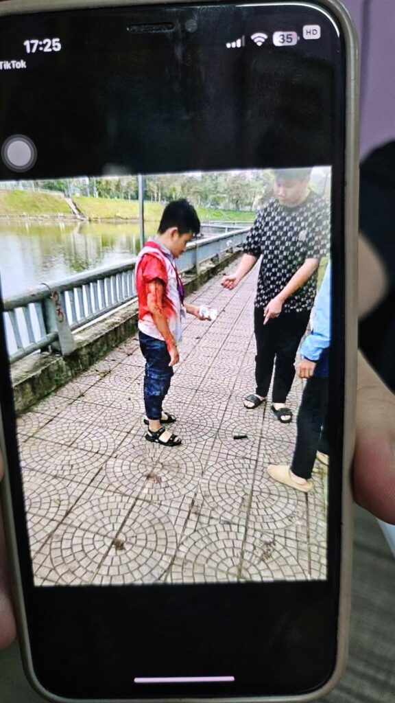 Trên mạng xã hội, nhiều clip và hình ảnh ghi lại vụ việc lan truyền nhanh chóng, cho thấy nạn nhân bị hành hung, sau đó bị hất xuống hồ nước, rồi được người dân vớt lên trong tình trạng có nhiều vết thương trên cơ thể.