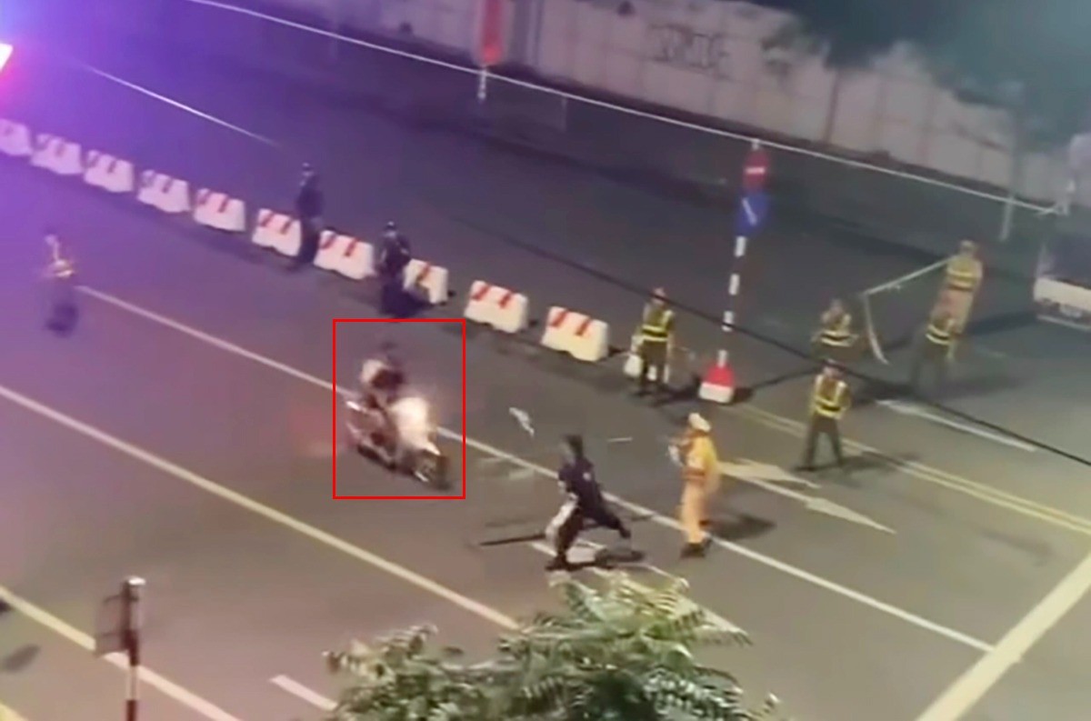Một cán bộ Phòng Cảnh sát cơ động, Công an TP Hà Nội có mặt tại hiện trường cho biết: “Qua quan sát ban đầu, chúng tôi nhận thấy 2 đối tượng ‘thông chốt’, tông thẳng vào chiến sĩ đang làm nhiệm vụ có biểu hiện bất thường. Cụ thể, 2 đối tượng khi thấy hiệu lệnh dừng xe nhưng không chấp hàng mà tiếp tục tăng ga, tông thẳng vào lực lượng làm nhiệm vụ”.