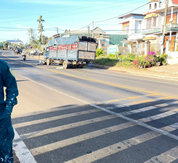 Khi đến Km 136+350, đoạn qua thôn Linh Nham, xã Mang Yang, tỉnh Gia Lai, xe máy của hai vợ chồng bất ngờ bị xe tải biển kiểm soát 86C-128.93 do tài xế Trần Minh Quang (SN 2002, trú xã Sơn Lang, tỉnh Gia Lai) điều khiển, lưu thông cùng chiều từ phía sau, tông mạnh vào.