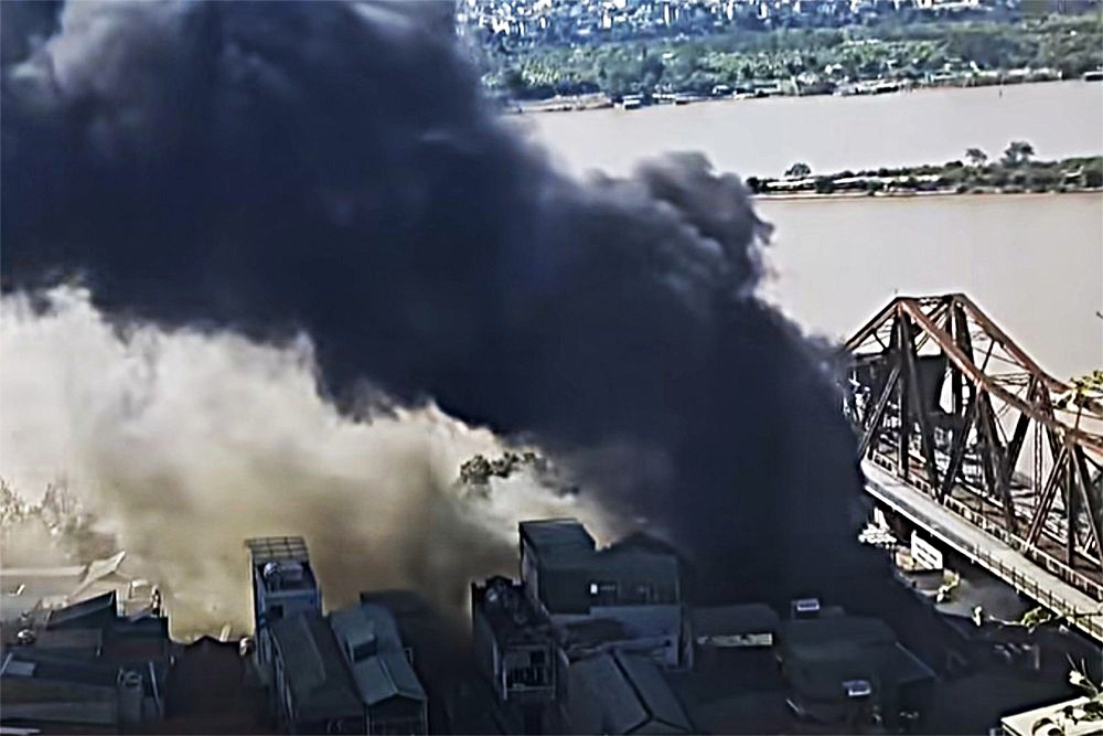 Trưa 20/11, một quán lẩu dưới chân cầu Long Biên, Bồ Đề, Hà Nội bùng cháy, khói dày đặc kèm tiếng nổ nghi do bình gas, may mắn không ghi nhận thương vong.