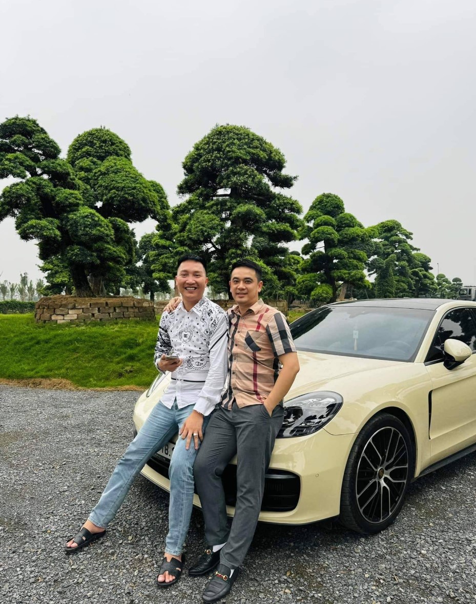 Hình ảnh anh Huấn Hoa Hồng và ông Đặng Hoàng Anh Chiến tại buổi khai trương vườn tùng Chiến Huấn JP hồi tháng 5/2024.