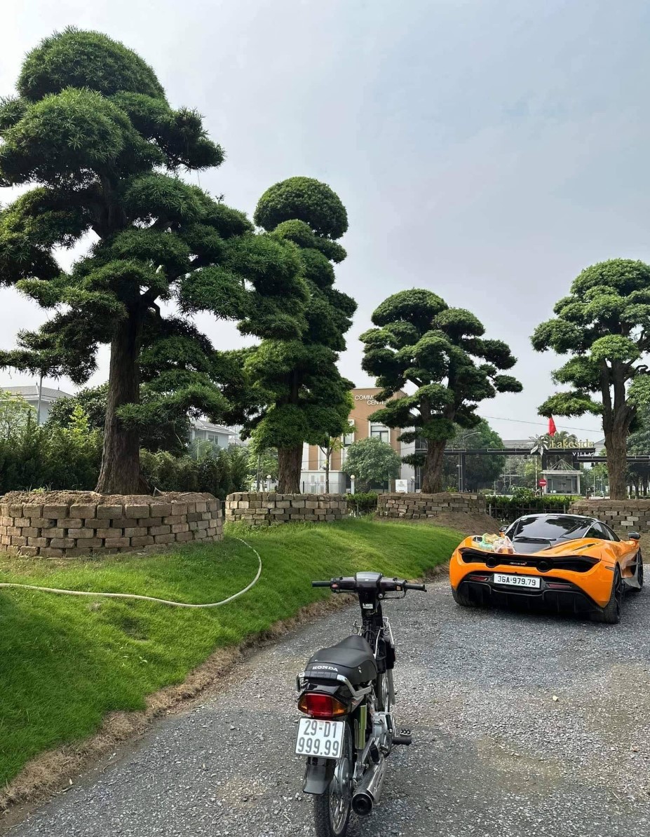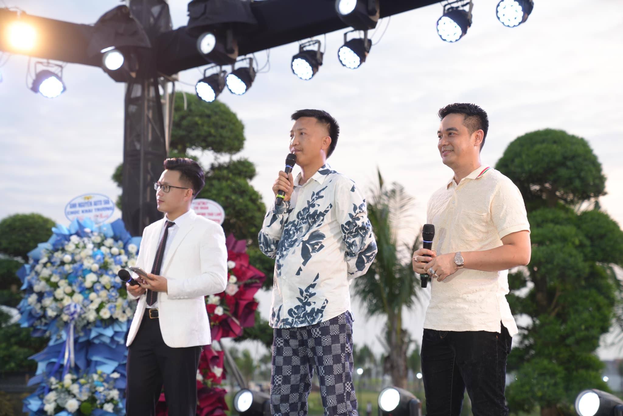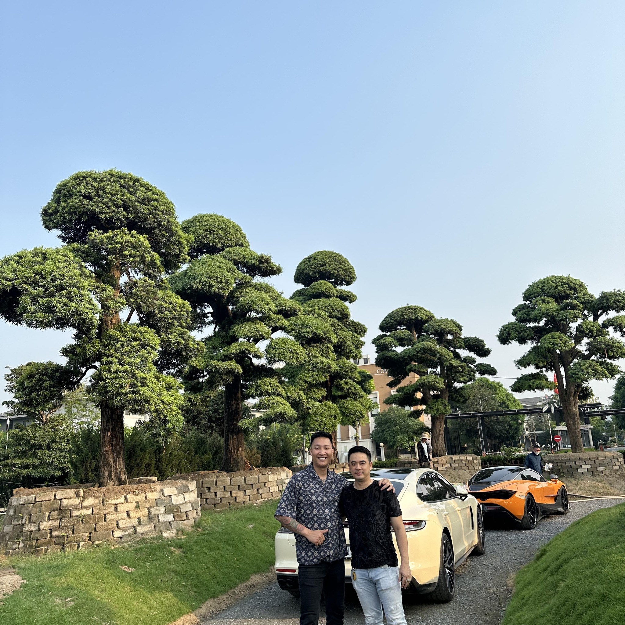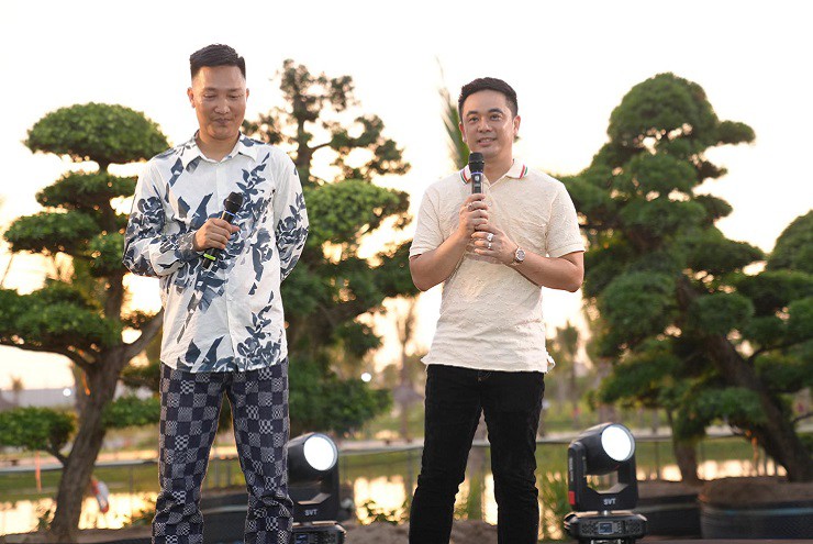 Hình ảnh anh Huấn Hoa Hồng và ông Đặng Hoàng Anh Chiến tại buổi khai trương vườn tùng Chiến Huấn JP hồi tháng 5/2024.