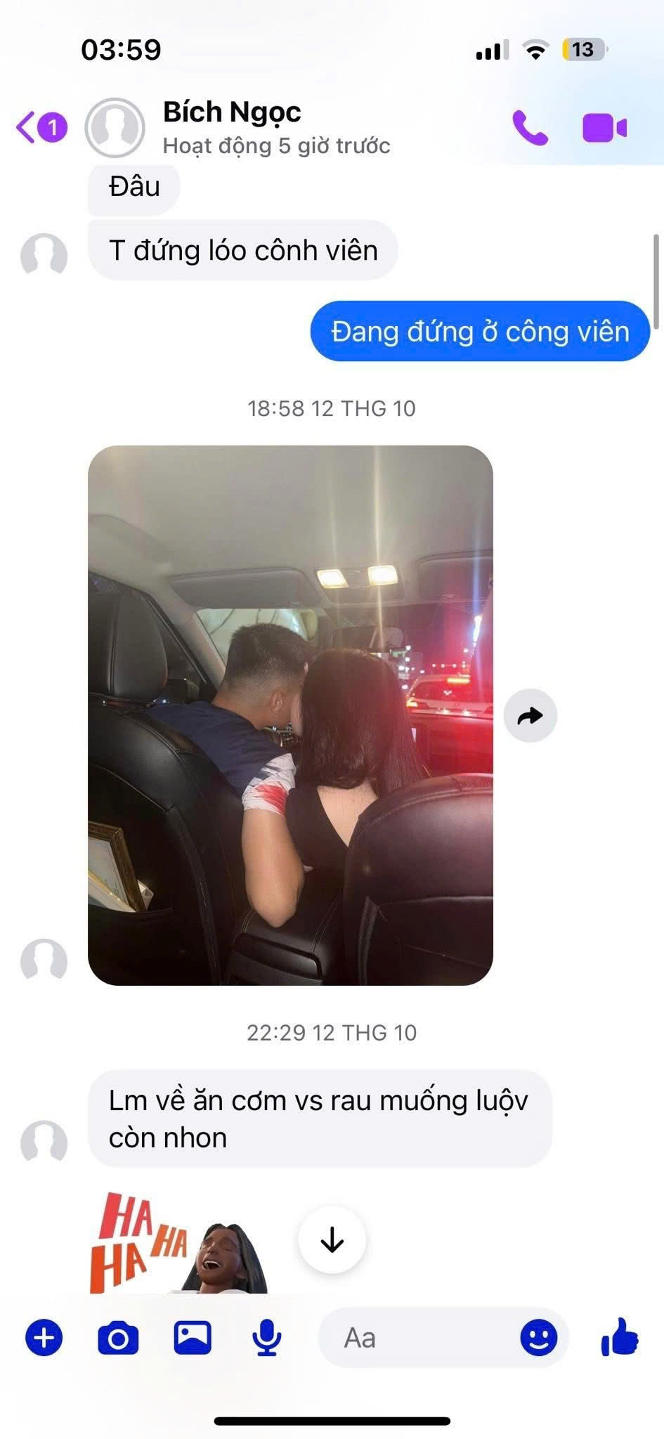 Anh Hưng cho rằng từ cuối tháng 9, vợ anh bắt đầu ngoại tình và có mối quan hệ thân thiết với một người đàn ông tên Thịnh. Trong bài viết, anh cũng nói mình có bằng chứng định vị cho thấy vợ “đi xem phim và qua đêm tại khu chung cư Hoàng Huy”. Khi bị hỏi, người vợ phủ nhận, cho rằng “bạn bè đi chơi, ngủ lại cùng nhau là chuyện bình thường”.