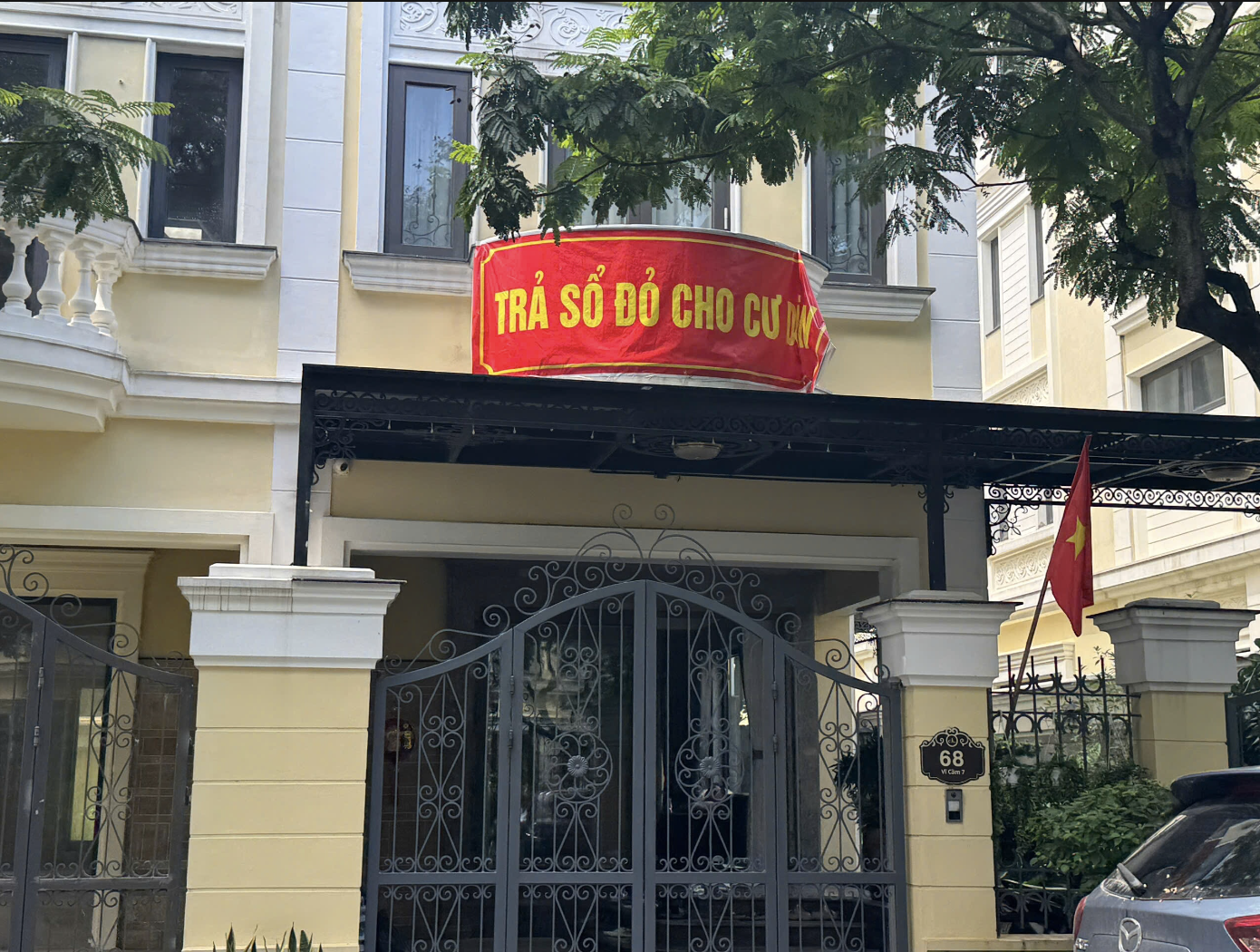 Dễ dàng bắt gặp những băng rôn “trả sổ đỏ cho cư cân” được treo tại nhiều căn biệt thự, liền kề. Ảnh: Anh Văn