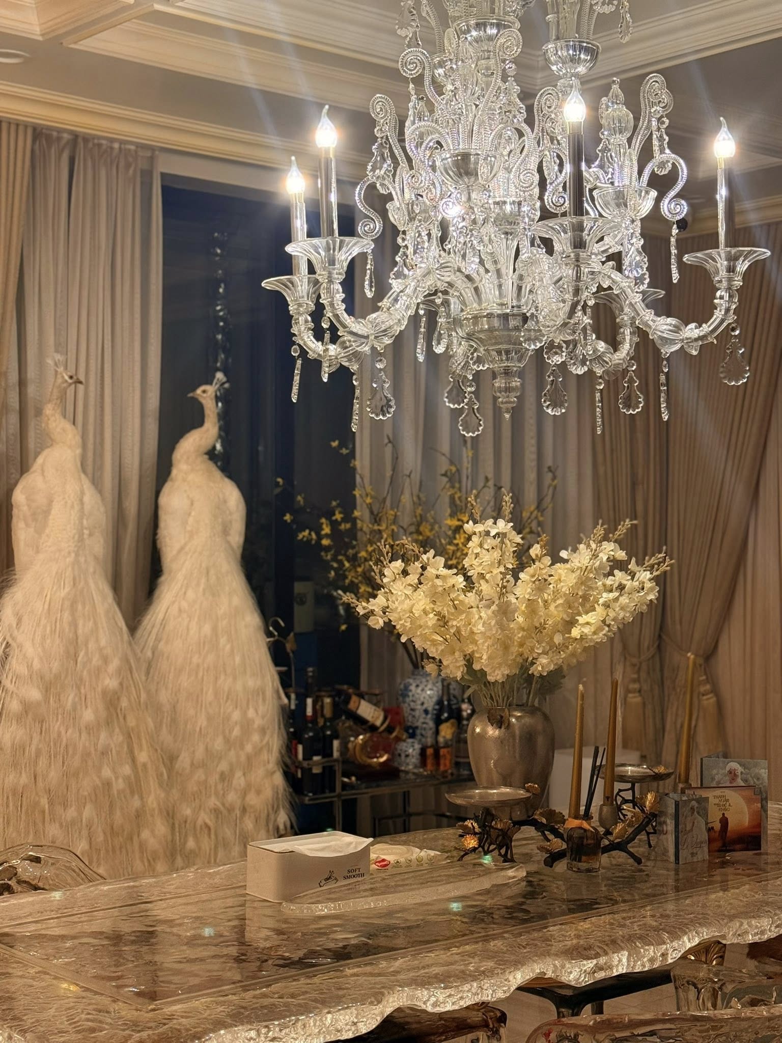 Không gian sống của Lệ Quyên còn có khu thờ Phật, phòng tắm thư giãn, bể bơi… Đặc biệt, nữ ca sĩ còn dành hẳn một khu vực để trưng bày các tác phẩm nghệ thuật, đồ cổ và bộ sưu tập thời trang hàng hiệu, khiến căn nhà như một “bảo tàng nghệ thuật thu nhỏ”.