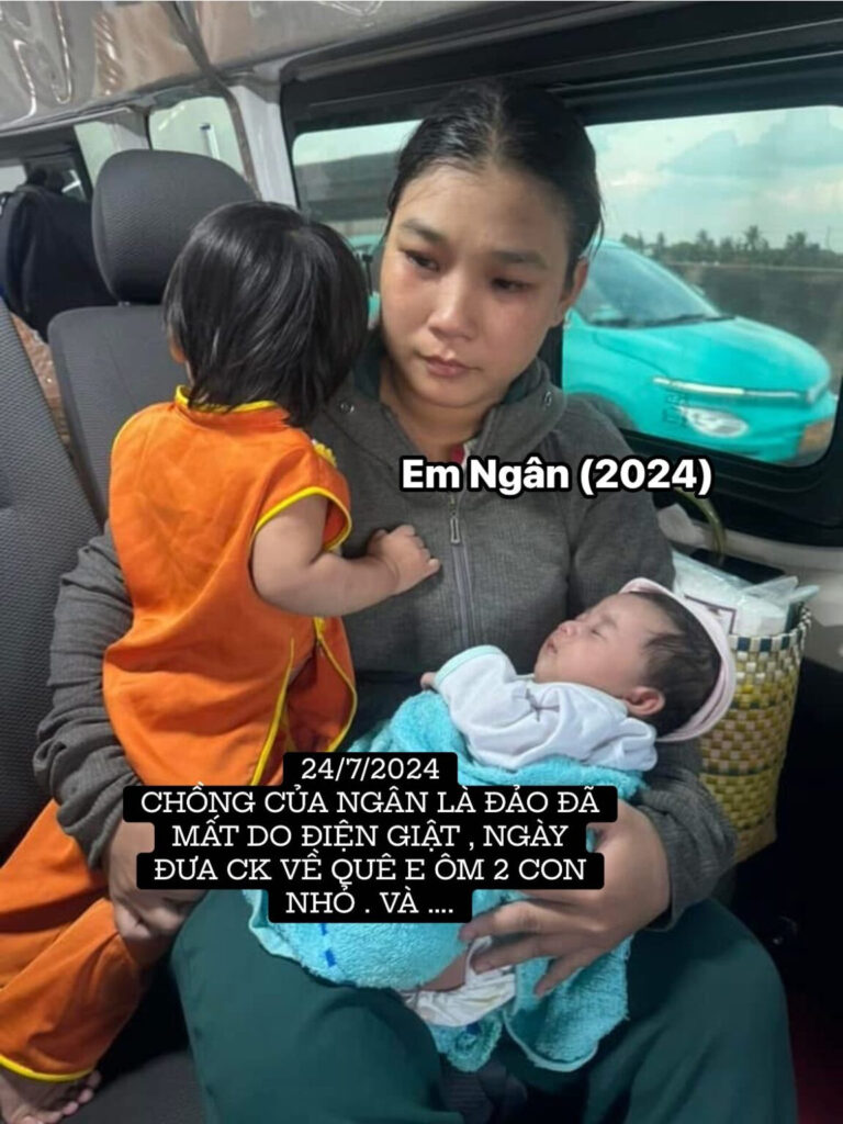 Người thân cho biết, chị Ngân từng phải gánh chịu nhiều mất mát. Trước đó, ngày 24/7/2024, chồng chị – anh An Văn Đảo (sinh năm 1999) – không may bị điện giật tử vong. Trong tang lễ, hình ảnh người vợ trẻ ôm hai con nhỏ còn đỏ hỏn khiến nhiều người không khỏi xót xa.