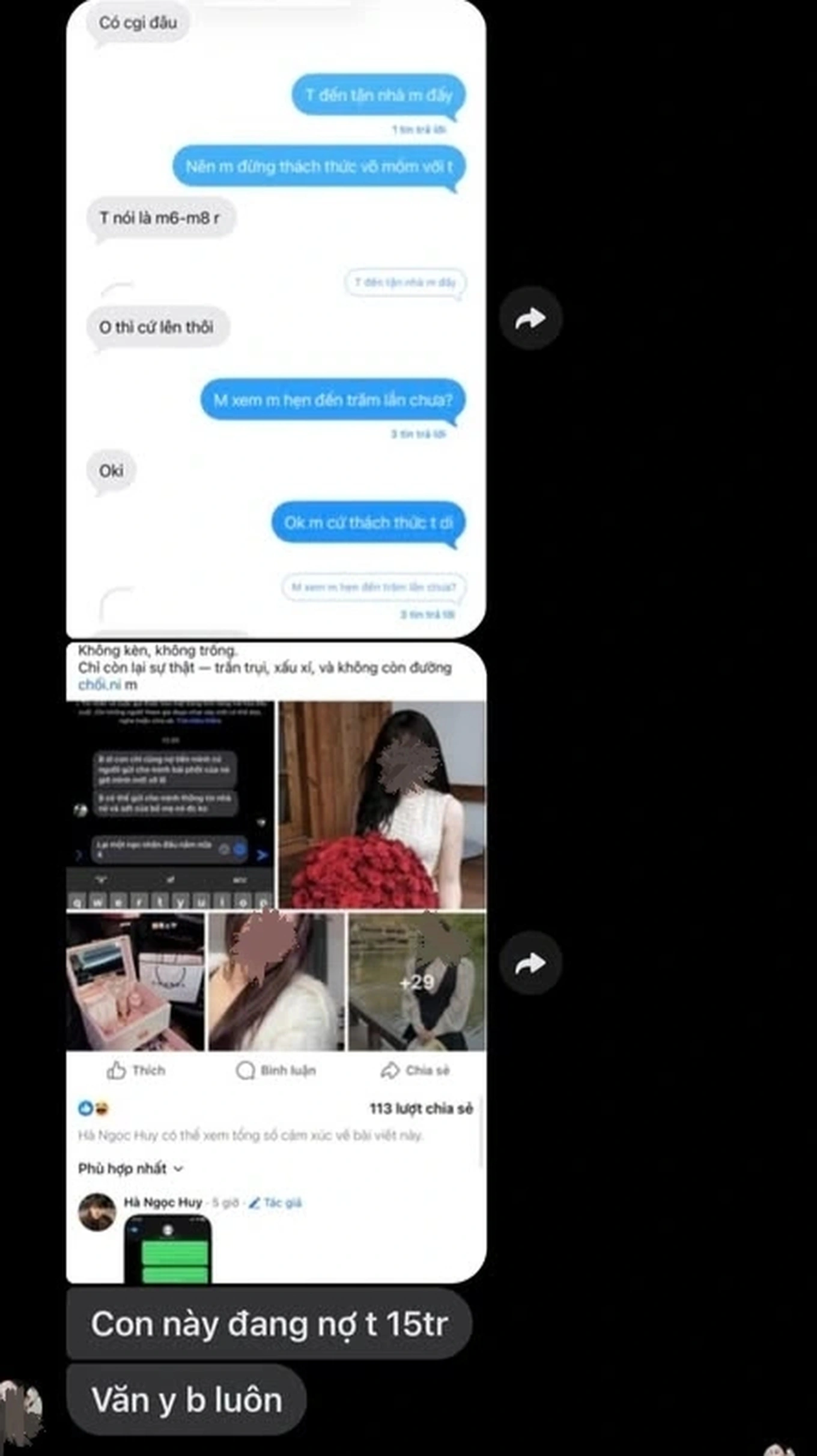 Bài “bóc phốt” C. do chị L.G. (26 tuổi, ở Quảng Ninh) và anh H.N.H. (22 tuổi, ở Hà Nội) đăng tải trên trang cá nhân. Cả 2 đều cho biết từng cho C. vay tiền, trong đó mới chỉ có chị G. đã đòi lại được khoản nợ.
