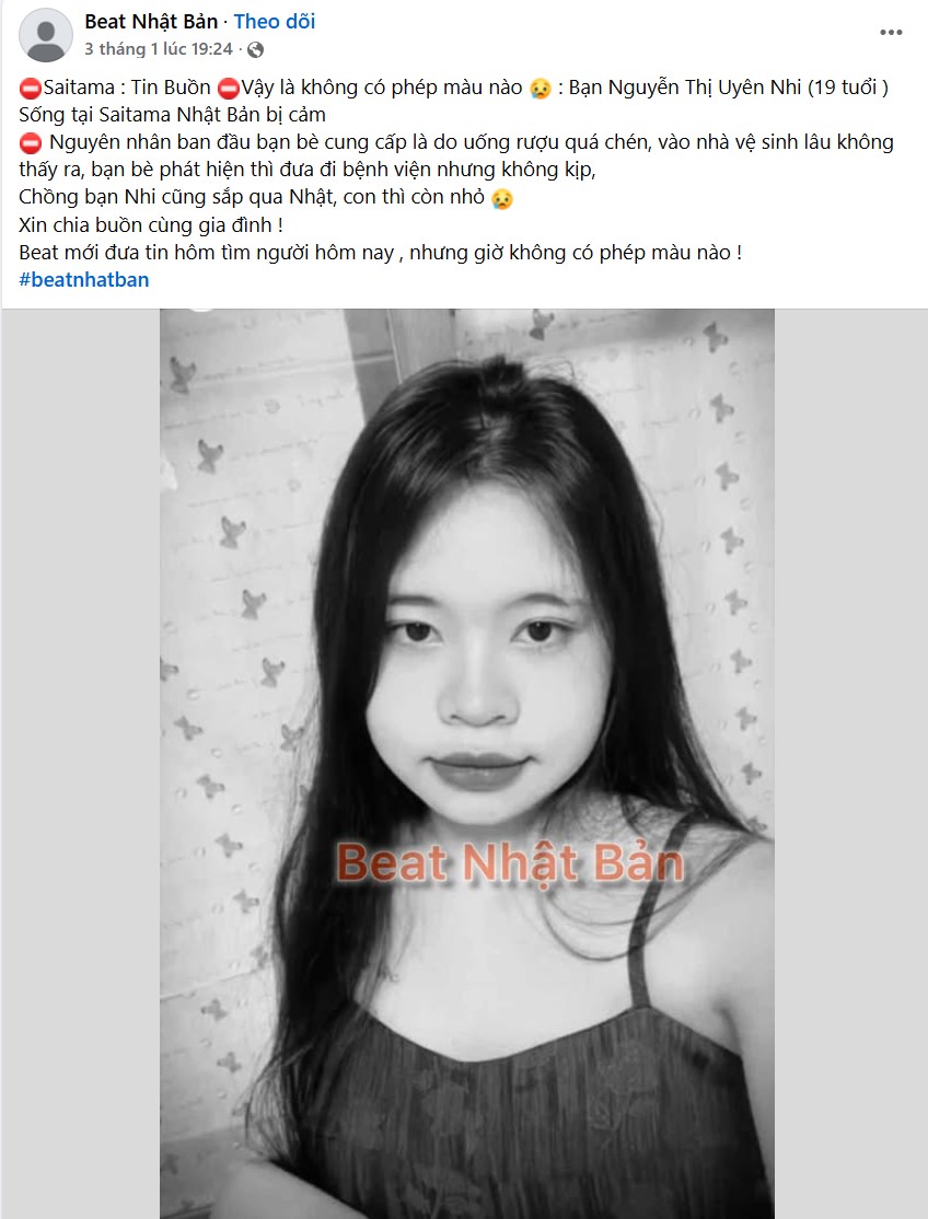 Theo thông tin được chia sẻ, chị Nguyễn Thị Uyên Nhi trong một buổi gặp mặt ngày Tết đã sử dụng rượu bia vượt quá khả năng chịu đựng của cơ thể. Sau đó, chị vào khu vực nhà vệ sinh trong thời gian dài. Do ảnh hưởng của thời tiết lạnh, sức khỏe của chị có dấu hiệu suy giảm nghiêm trọng.