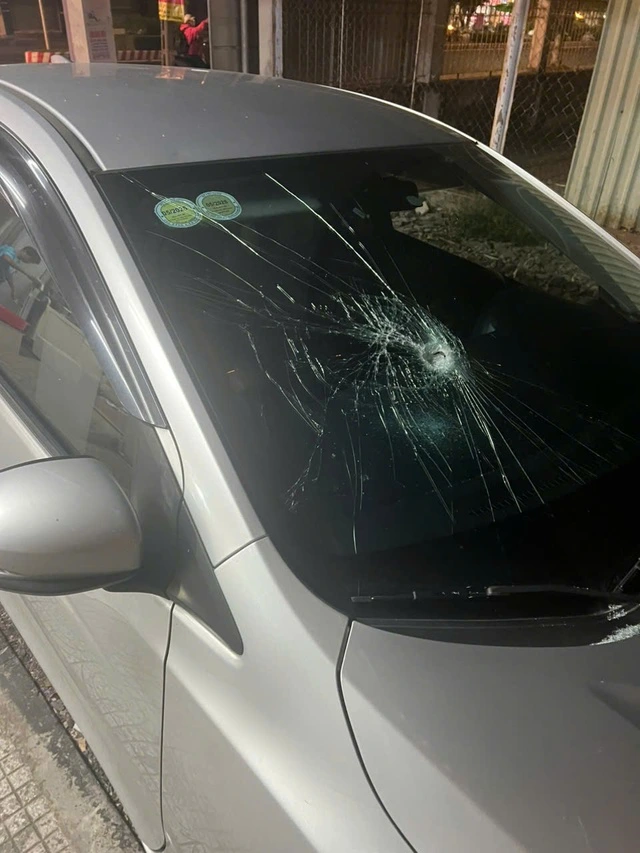 Tức giận, một trong số những người này đã dùng vật cứng đập làm bể kính chắn gió phía trước của ô tô rồi lên xe bỏ đi.