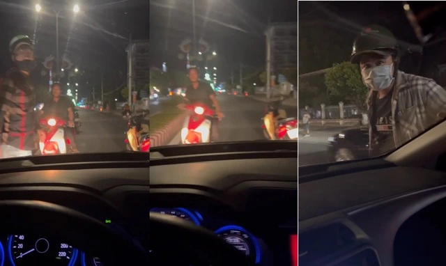 Nhóm người đi xe máy chặn xe ô tô giữa đường