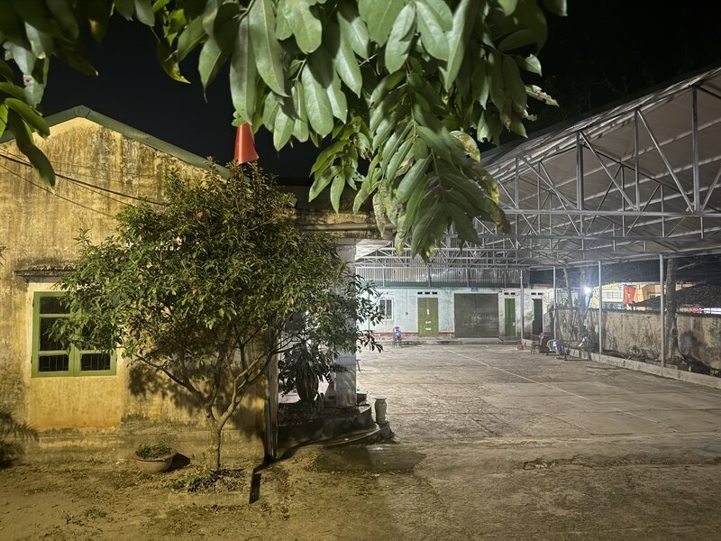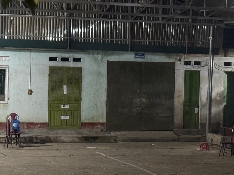 Bên trong khuôn viên trụ sở gồm hai dãy nhà và một khoảng sân có mái che. Trong số đó có một khu nhà được cho là nhà ăn – bếp, với cánh cửa màu xanh hiện đang được niêm phong bởi lực lượng nghiệp vụ.