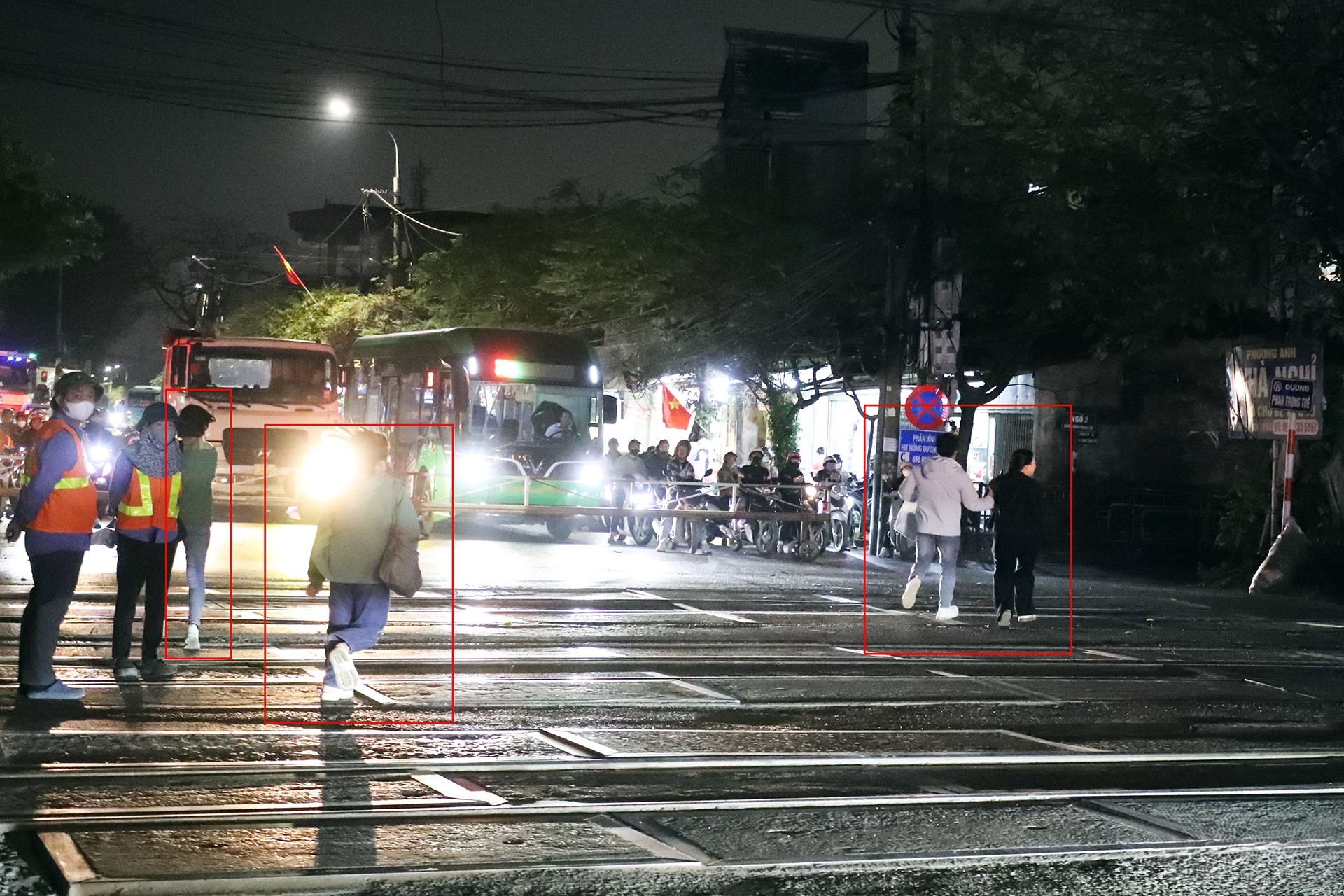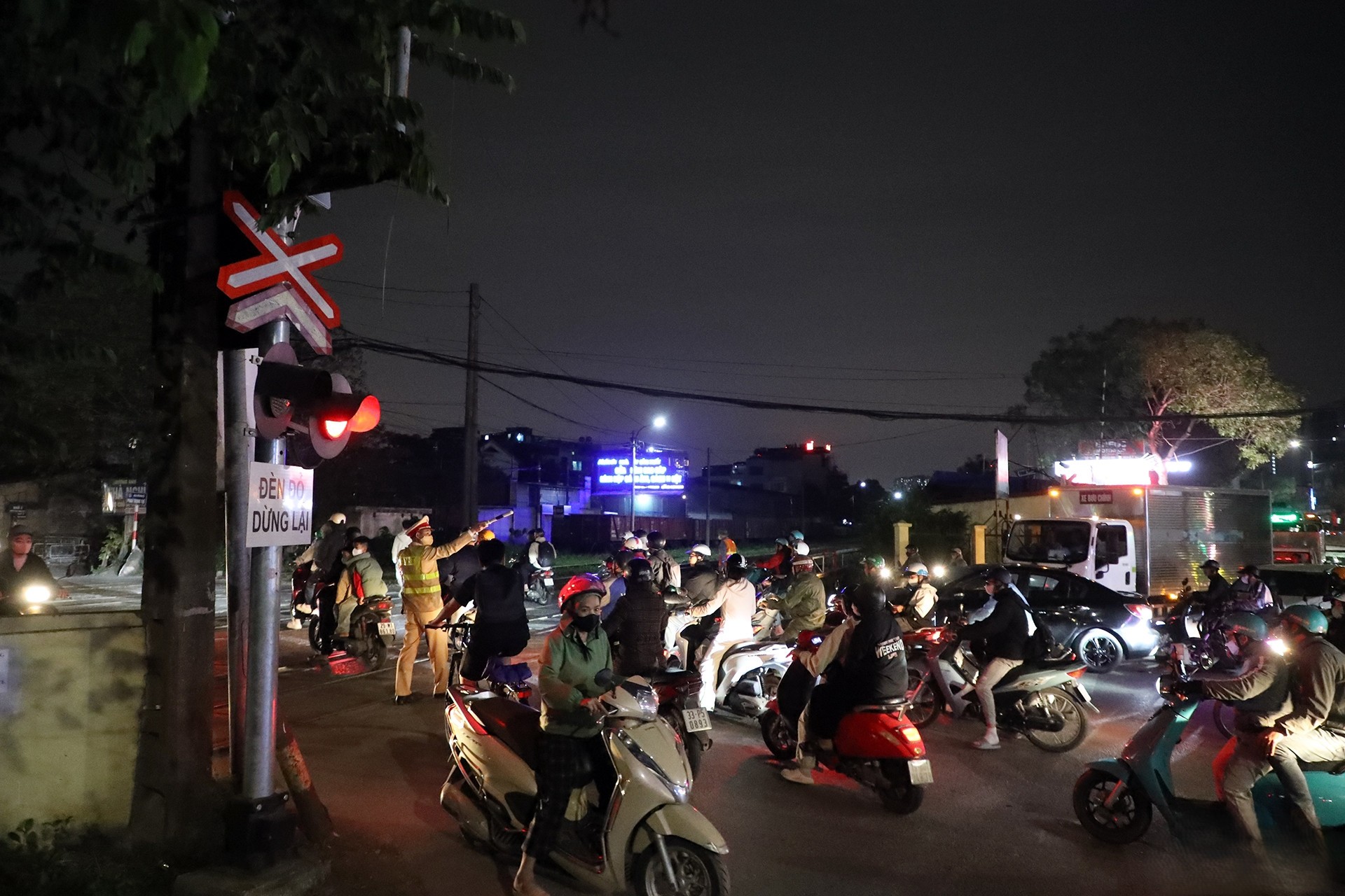 Đến khoảng 22h30, tại điểm giao giữa đường sắt và ngõ 298 Ngọc Hồi, dù có hệ thống cảnh báo và gác chắn tự động, một số người vẫn phớt lờ tín hiệu.