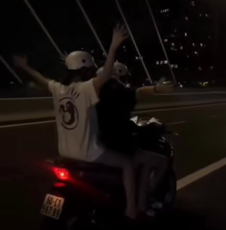 Trước đó, mạng xã hội xôn xao clip 3 cô gái trên xe máy hiệu SH chạy trên cầu Ba Son, được người điều khiển buông tay hướng từ trung tâm TPHCM đi phường An Khánh. Sau đó, cả 3 bất ngờ buông tay, người ở giữa đứng lên.