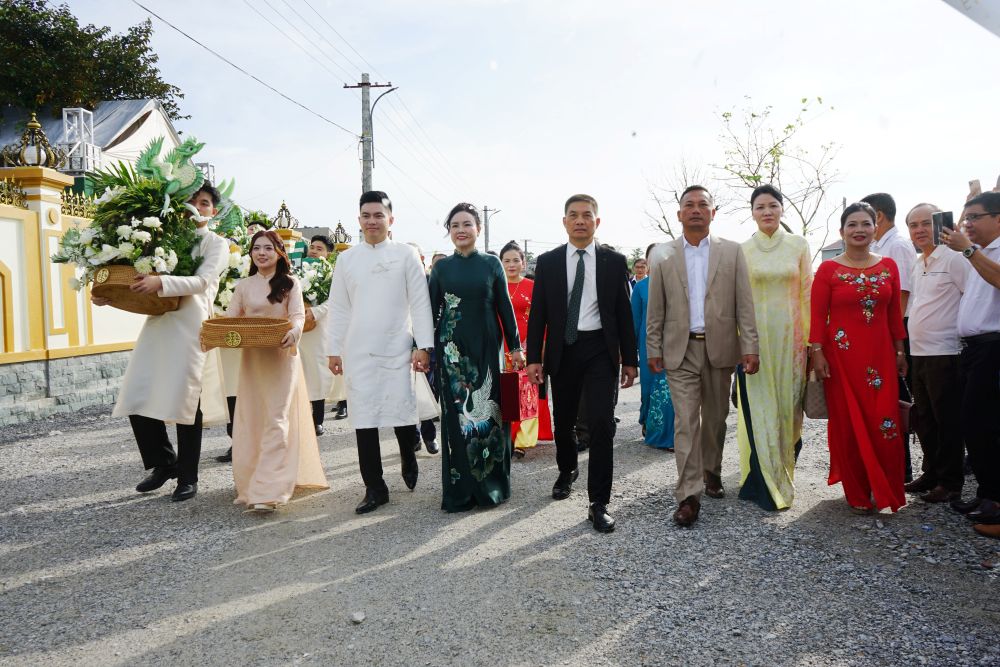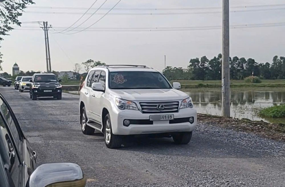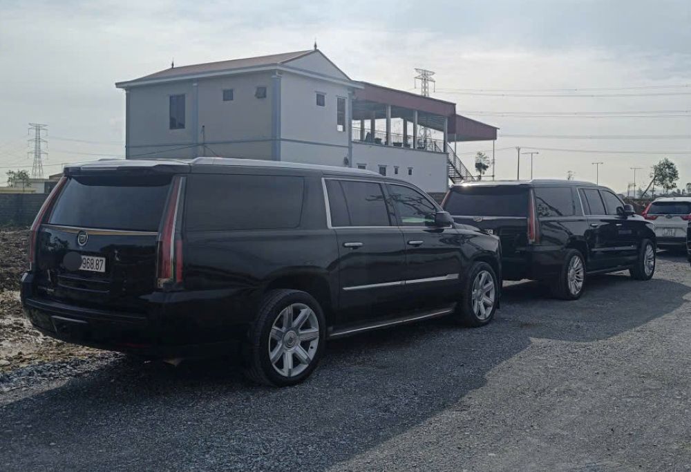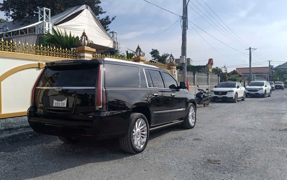 Trong đó, một chiếc Cadillac mang biển số ngũ quý 999.99 gây ấn tượng đặc biệt khi xuất hiện tại buổi lễ. Ngoài ra, nhiều xe Cadillac khác cùng dàn xế hộp mang biển số đẹp cũng được ghi nhận có mặt trong đoàn xe đưa – đón hai họ.