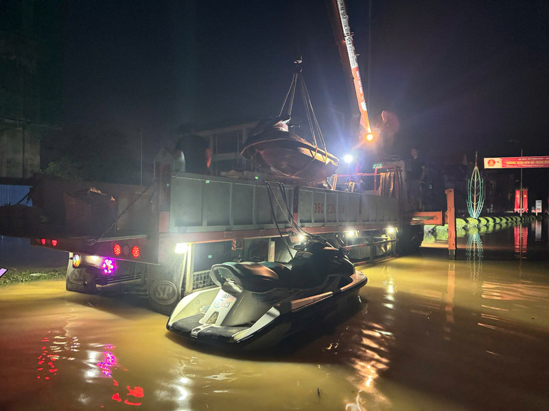 Với 1 chiếc xe bán tải, 1 chiếc xe cẩu và 1 chiếc xe cứu thương, nhóm của Phúc đã chuyển 2 chiếc ca nô, 1 xuồng máy và nhiều nhu yếu phẩm như mỳ tôm, nước uống, sữa… lên hỗ trợ bà con chống chọi với ngập lụt.