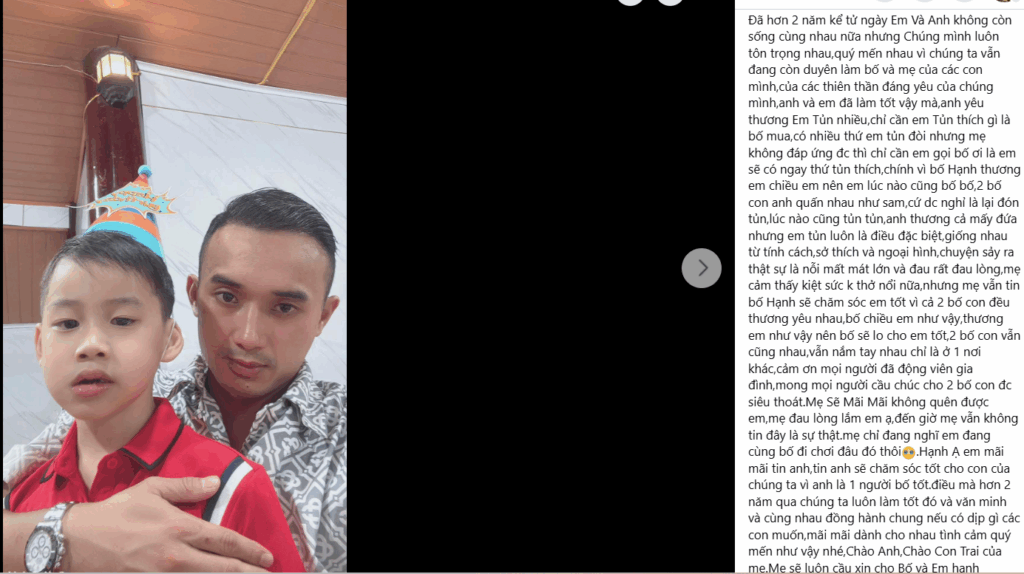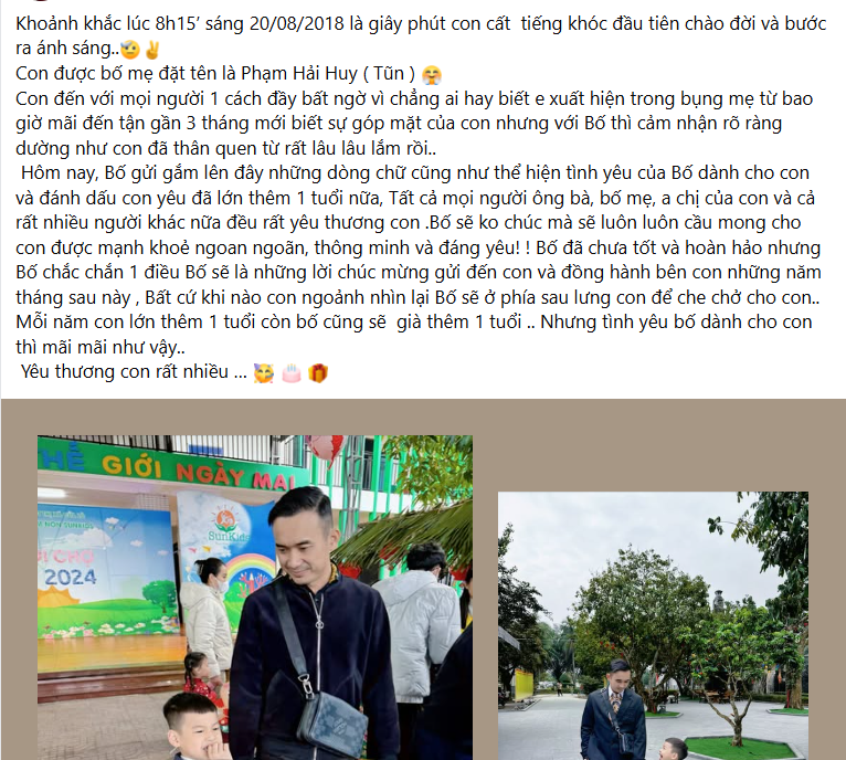 Được biết người bố đang là CSGT tại địa phương. Anh có một cuộc hôn nhân không trọn vẹn nhưng vẫn là một người bố, người chồng đầy trách nhiệm trong mắt người thân. Những chia sẻ nghẹn ngào của vợ cũ đã chứng minh anh là một người như thế.