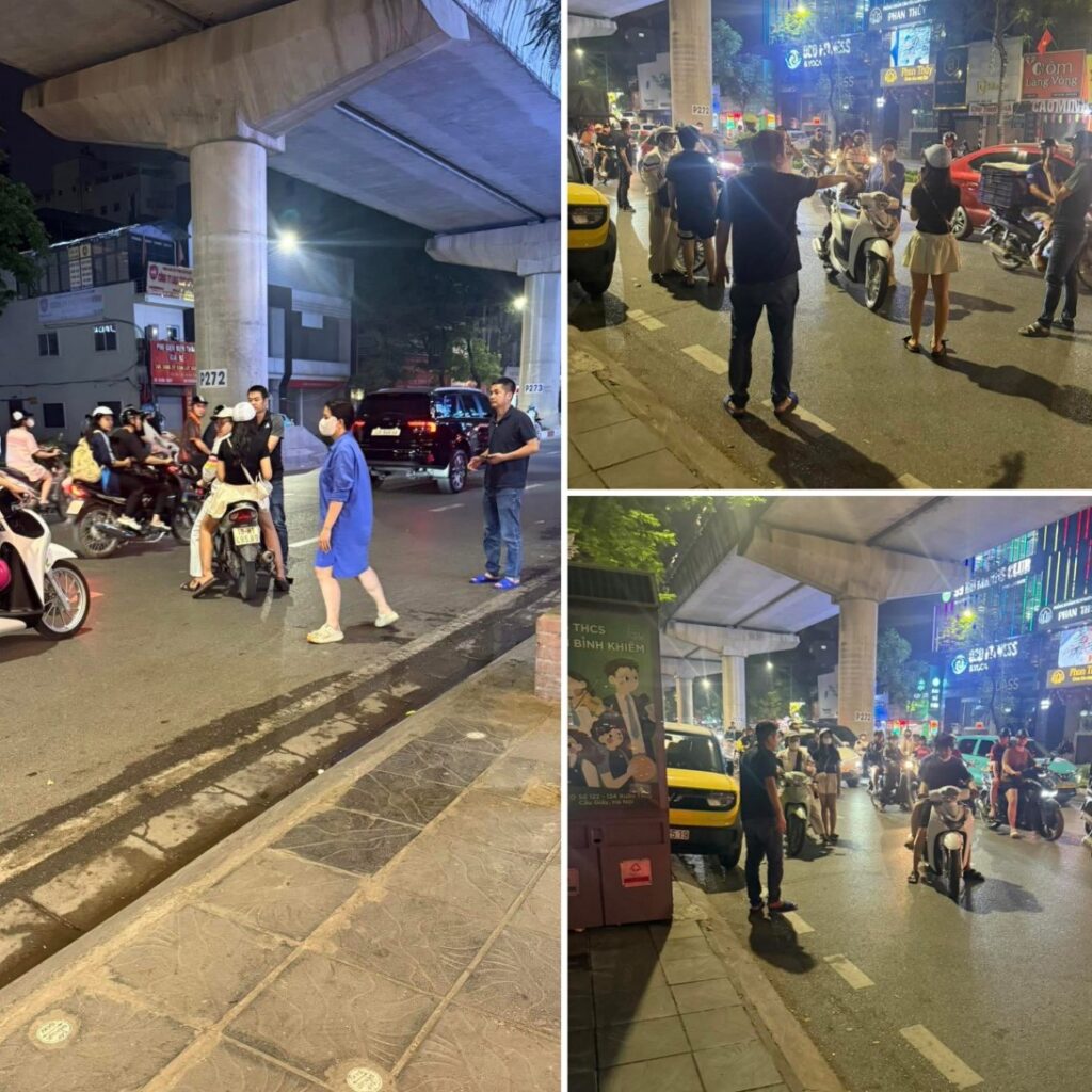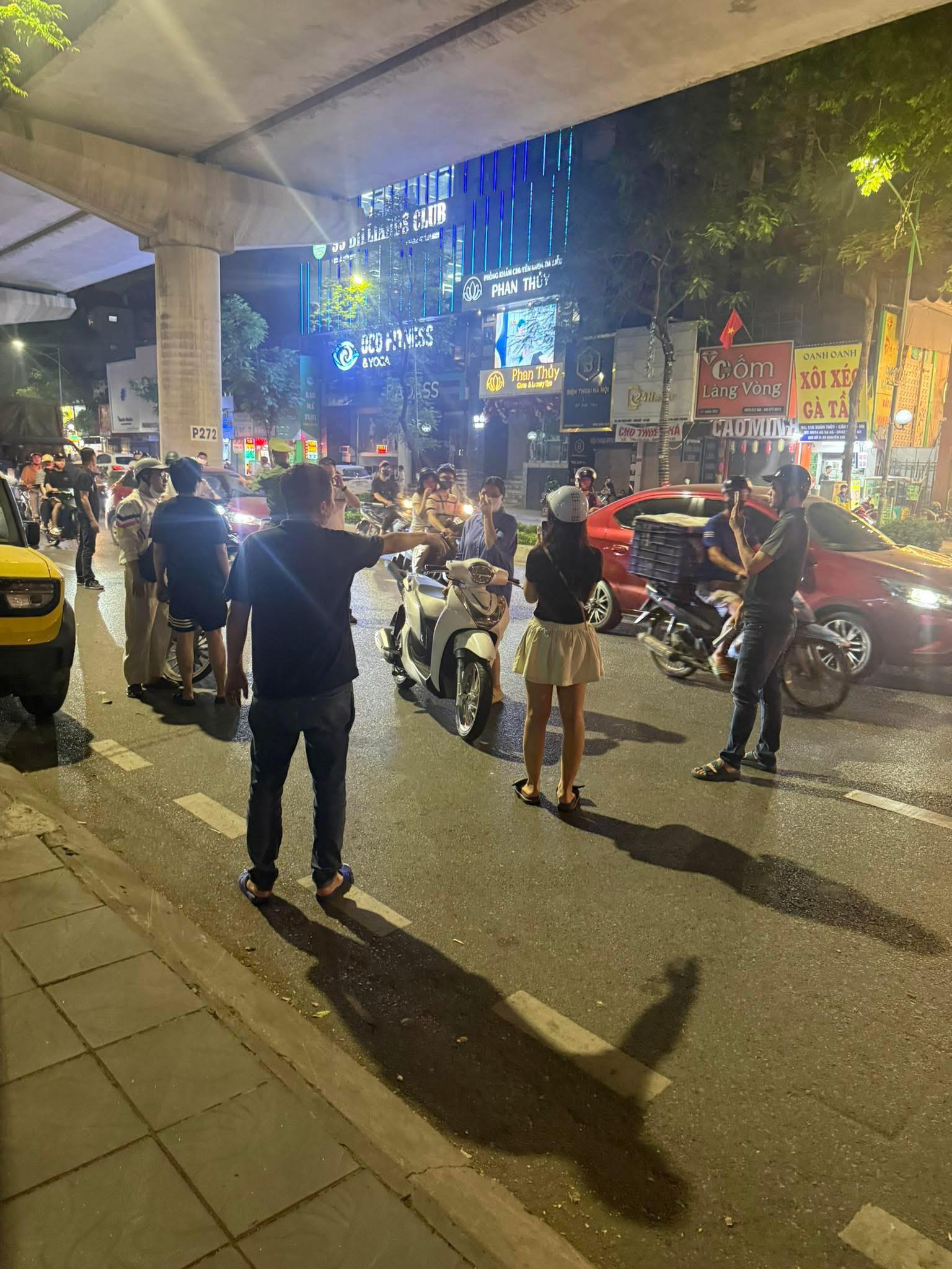 Diễn biến vụ xô xát trên đường Xuân Thủy tối qua : Một người bị tấn công bằng mũ bảo hiểm phải nhập viện. Hiện cơ quan chức năng đã tiến hành dựng lại hiện trường.