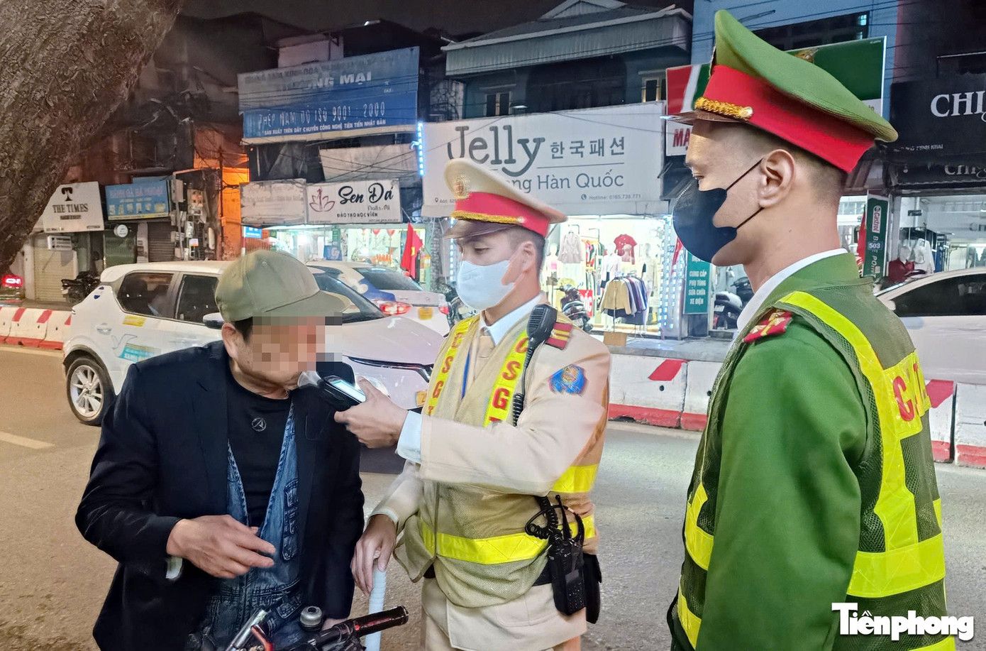 Đáng chú ý, khoảng hơn 21h, tổ công tác dừng kiểm tra đối với nam tài xế T.Q.A. (trú tại Hà Nội) điều khiển xe máy lưu thông theo hướng từ đường Minh Khai đi đê Nguyễn Khoái. Thời điểm kiểm tra, tài xế nồng nặc mùi bia rượu, chân đi không vững, phải được cán bộ CSGT dìu vào khu vực làm việc.