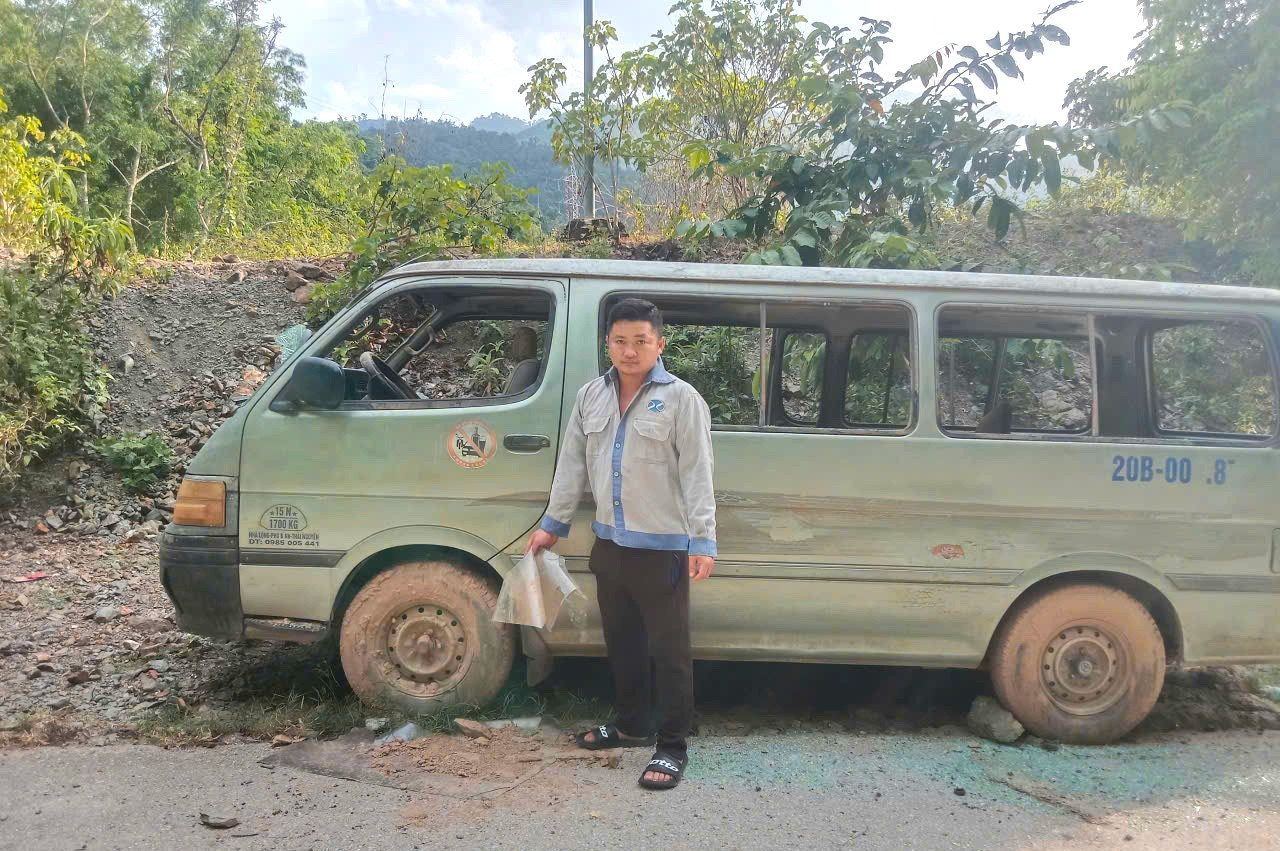 Dù chiếc xe ô tô 16 chỗ bị hư hỏng sau một đêm chở người dân chạy khỏi lũ nhưng Trưởng bản Lương Văn Đông (xã Yên Na, tỉnh Nghệ An) vẫn thấy vui vì giúp được mọi người an toàn.