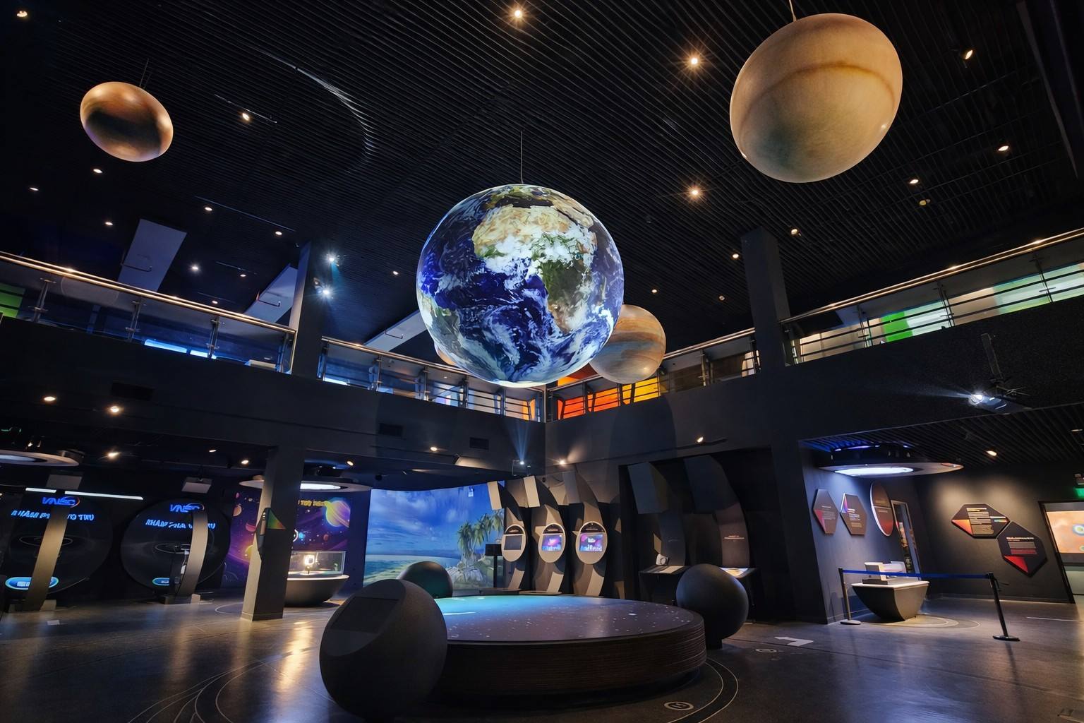 Liên kết giữa tầng 1 và tầng 2 của bảo tàng là hệ thống mô hình Mặt Trời cùng các hành tinh, được dàn dựng với hiệu ứng ánh sáng đặc biệt, tạo cảm giác như người xem đang lạc giữa không gian và chiêm ngưỡng vũ trụ ở cự ly gần.