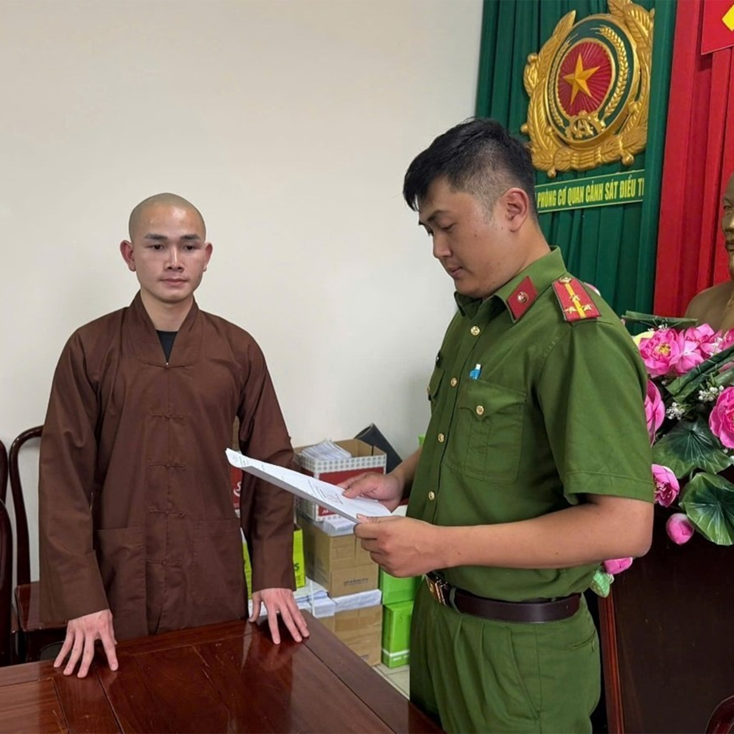 Ngày 13/01/2026, Văn phòng Cơ quan CSĐT Công an tỉnh đã tống đạt quyết định kh,ởi t,ố bị can và Lệnh cấm đi khỏi nơi cư trú đối với bị can Vũ Hoàng Phú, sinh năm: 2000, HKTT: Xóm 15 Đồng Hướng, xã Quang Thiện, tỉnh Ninh Bình về tội “Gây rối trật tự công cộng”