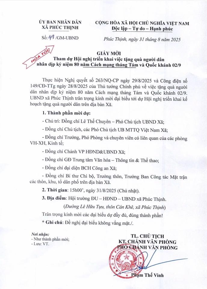 Đồng thời, phối hợp chặt chẽ, triển khai ngay việc rà soát đối tượng nhận quà tặng và thực hiện chuyển phần quà đến người dân bằng biện pháp phù hợp (chuyển khoản hoặc trực tiếp) trong thời gian sớm nhất có thể, xong trước ngày Quốc khánh 02/9/2025.