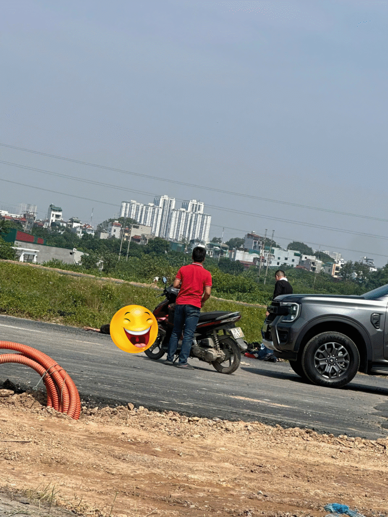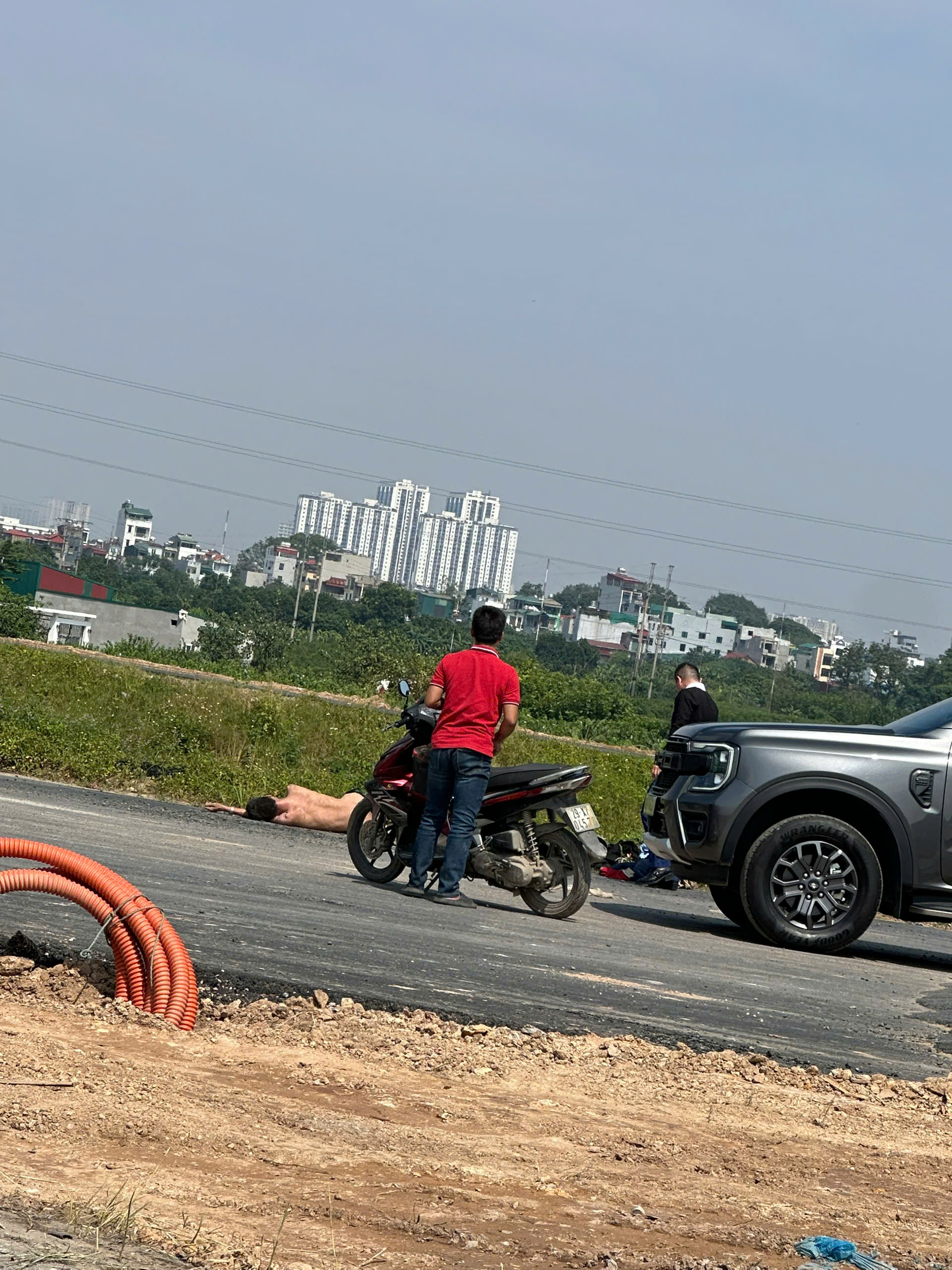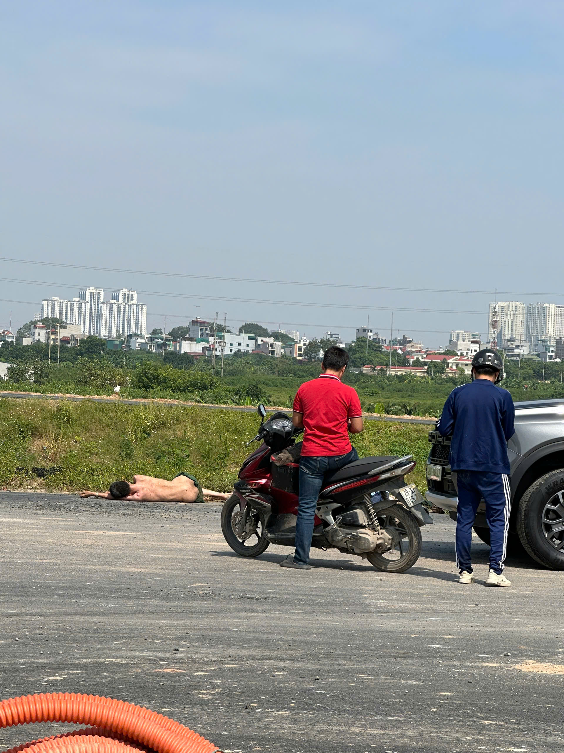 La Phù –  Vừa xong đoạn vành đai 4 cắt qua La Phù, Hoài Đức cũ, chịu Anh Zai rồi không hiểu giận dỗi ai hay vấn đề gì mà trâ`n như nhộng bỏ hết quần áo, dép nằm giữa đường nắng mặc kệ người khác can ngăn 😇