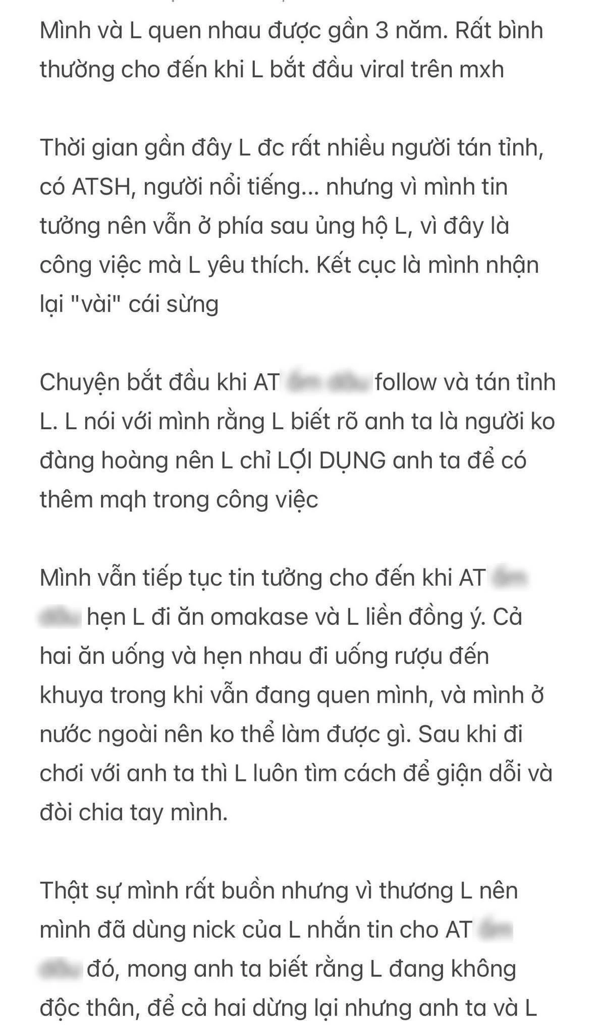 Tối ngày 22/9, trên mạng xuất hiện bài viết gây xôn xao khi một tài khoản ẩn danh tự nhận mình là bạn trai của hot girl mạng D.P.L. và lên tiếng tố cáo một nam rapper từng tham gia chương trình “Anh trai say hi” về việc có mối quan hệ lén lút với người yêu mình. Theo chủ tài khoản chia sẻ, D.P.L. và nam rapper được đề cập ban đầu nhắn tin qua lại với nhau thế nhưng dần dần, những tin nhắn trở nên thiếu đứng đắn và có xu hướng nói sang chuyện tình cảm.