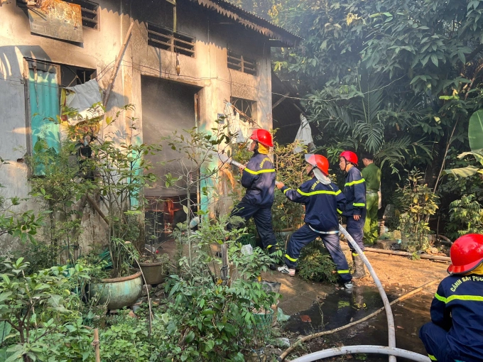 Hàng chục cảnh sát PCCC và công an phường đến hiện trường, dập hỏa hoạn sau 10 phút. Tuy nhiên, nhiều đồ đạc đã bị lửa thiêu rụi.