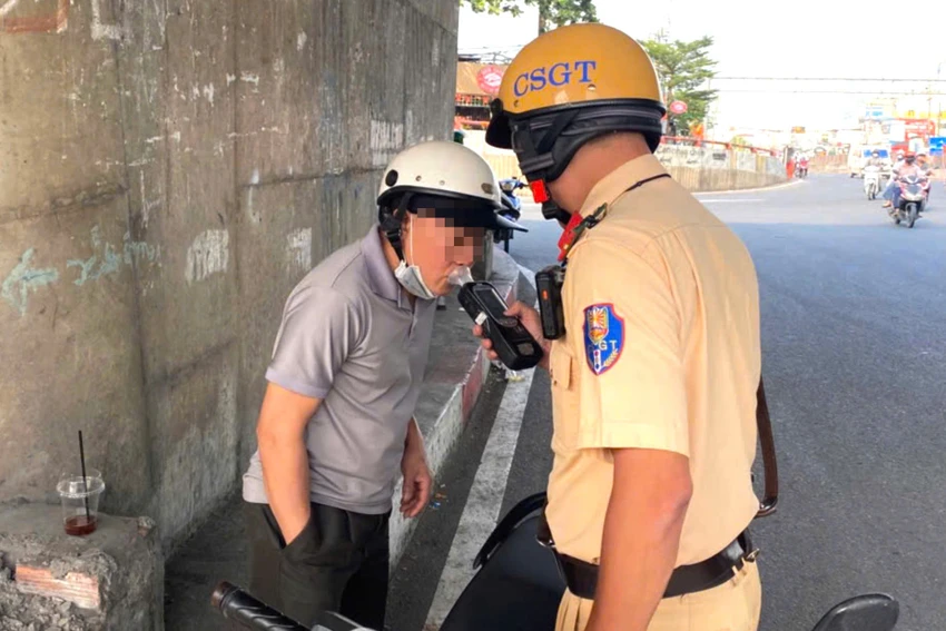 Tiếp đó, khoảng 14 giờ 30 phút, tại khu vực vòng xoay cầu vượt Linh Xuân, lực lượng CSGT tiếp tục phát hiện anh P.Đ.T. (48 tuổi, ngụ TP.HCM) điều khiển xe máy có dấu hiệu vi phạm. Qua kiểm tra, anh T. vi phạm nồng độ cồn 0,624 mg/lít khí thở, vượt mức kịch khung. Trường hợp này cũng bị lập biên bản xử phạt và tạm giữ phương tiện.