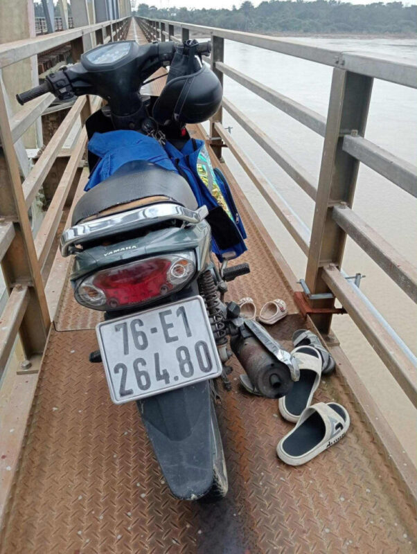 Trước đó, khoảng 10 giờ 30 phút cùng ngày, người dân phát hiện một người đàn ông điều khiển xe máy biển số 76E1-264… chở hai cháu nhỏ trên đường đi học về, lưu thông qua cầu đường sắt Trường Xuân bắc qua sông Trà Khúc.