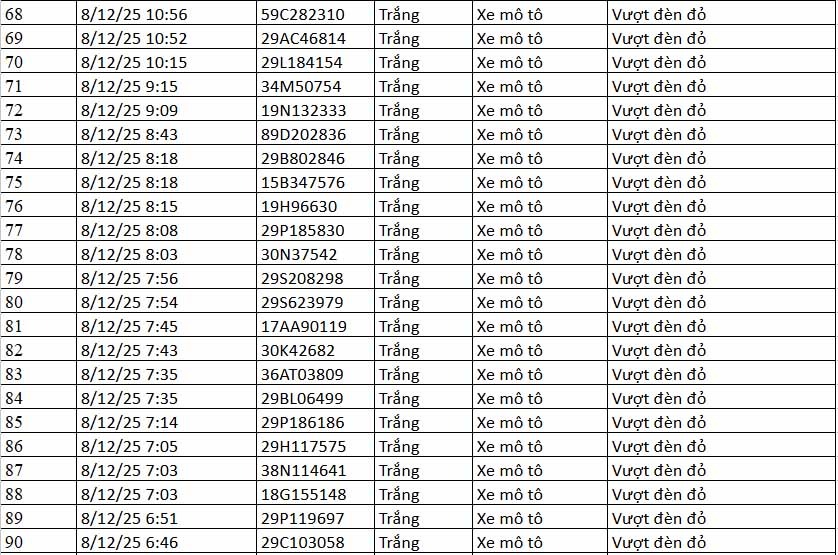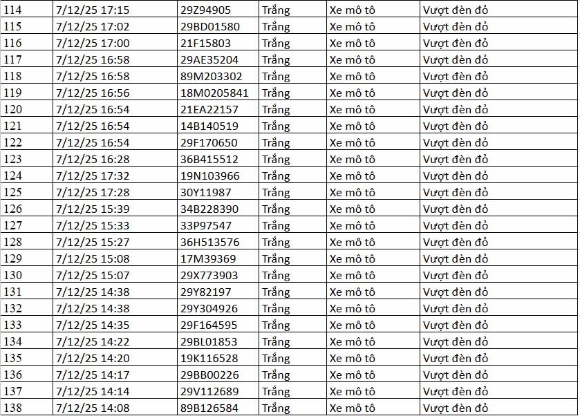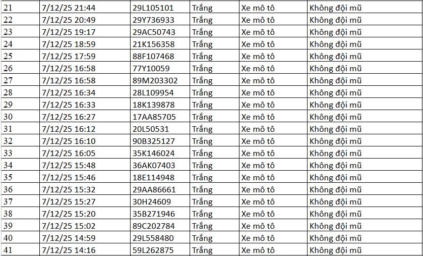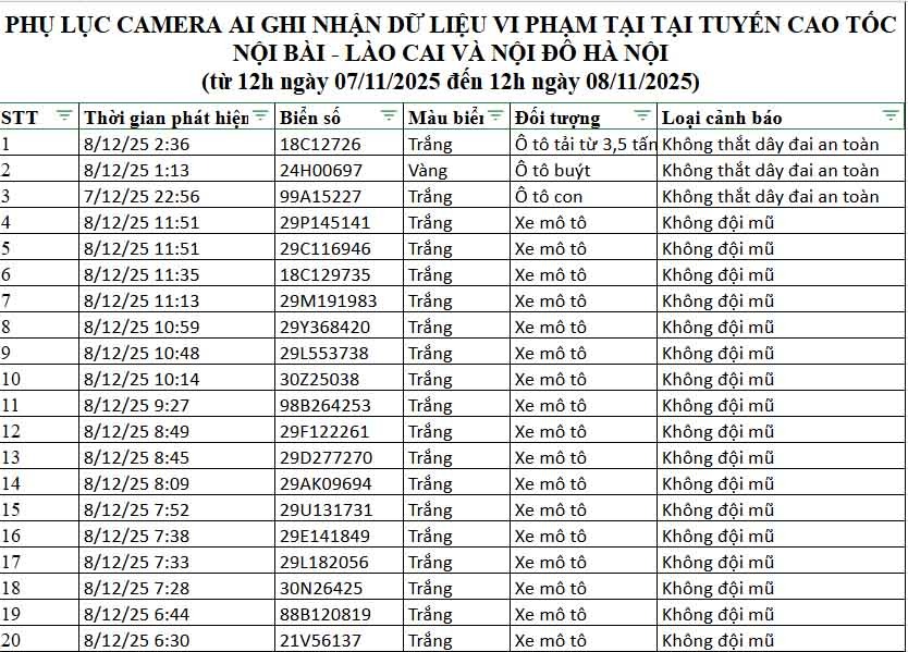 Thông tin từ Cục Cảnh sát giao thông (CSGT) – Bộ Công an, từ 12h ngày 7.12 đến 12h ngày 8.12.2025, hệ thống camera AI đặt tại nhiều vị trí trên địa bàn Hà Nội và tuyến cao tốc Nội Bài – Lào Cai đã ghi nhận số lượng lớn phương tiện lưu thông, đồng thời phát hiện nhiều hành vi vi phạm trật tự an toàn giao thông.