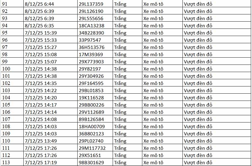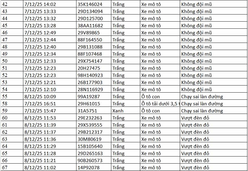 Dưới đây là danh sách chi tiết do Cục CSGT công bố.