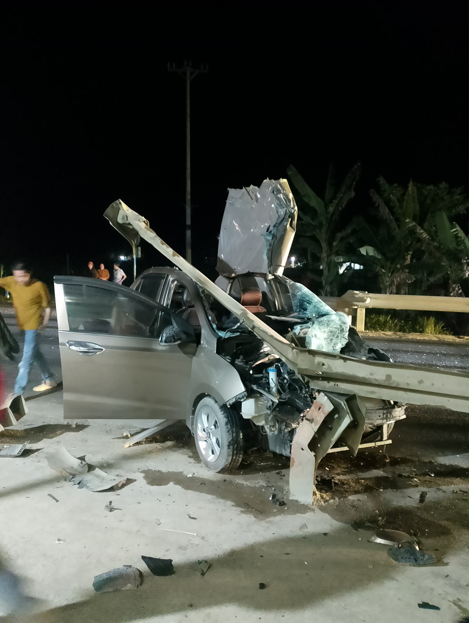 Một vụ tai nạn giao thông vừa xảy ra trên đường Hồ Chí Minh, đoạn qua xóm Trung, xã Thạch Quảng, tỉnh Thanh Hóa, khi một chiếc ô tô con đang lưu thông bất ngờ tông mạnh vào lan can bên đường, khiến phần đầu xe bị vỡ nát.