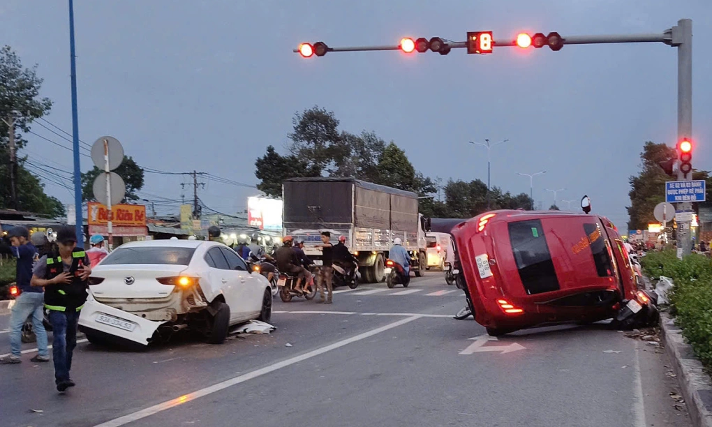 Xe 5 chỗ tông liên hoàn ôtô và 4 xe máy, nhiều người bị thương tại Bình Dương cũ