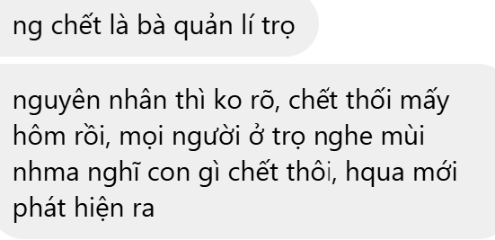 Theo thông tin ban đầu, người phụ nữ được cho là đã qua đời từ nhiều ngày trước. Do căn phòng trọ phát sinh mùi bất thường, người dân xung quanh nghi ngờ có sự việc không bình thường nên đã trình báo cơ quan chức năng. Khi kiểm tra, lực lượng chức năng phát hiện nạn nhân nằm bên trong phòng trọ.