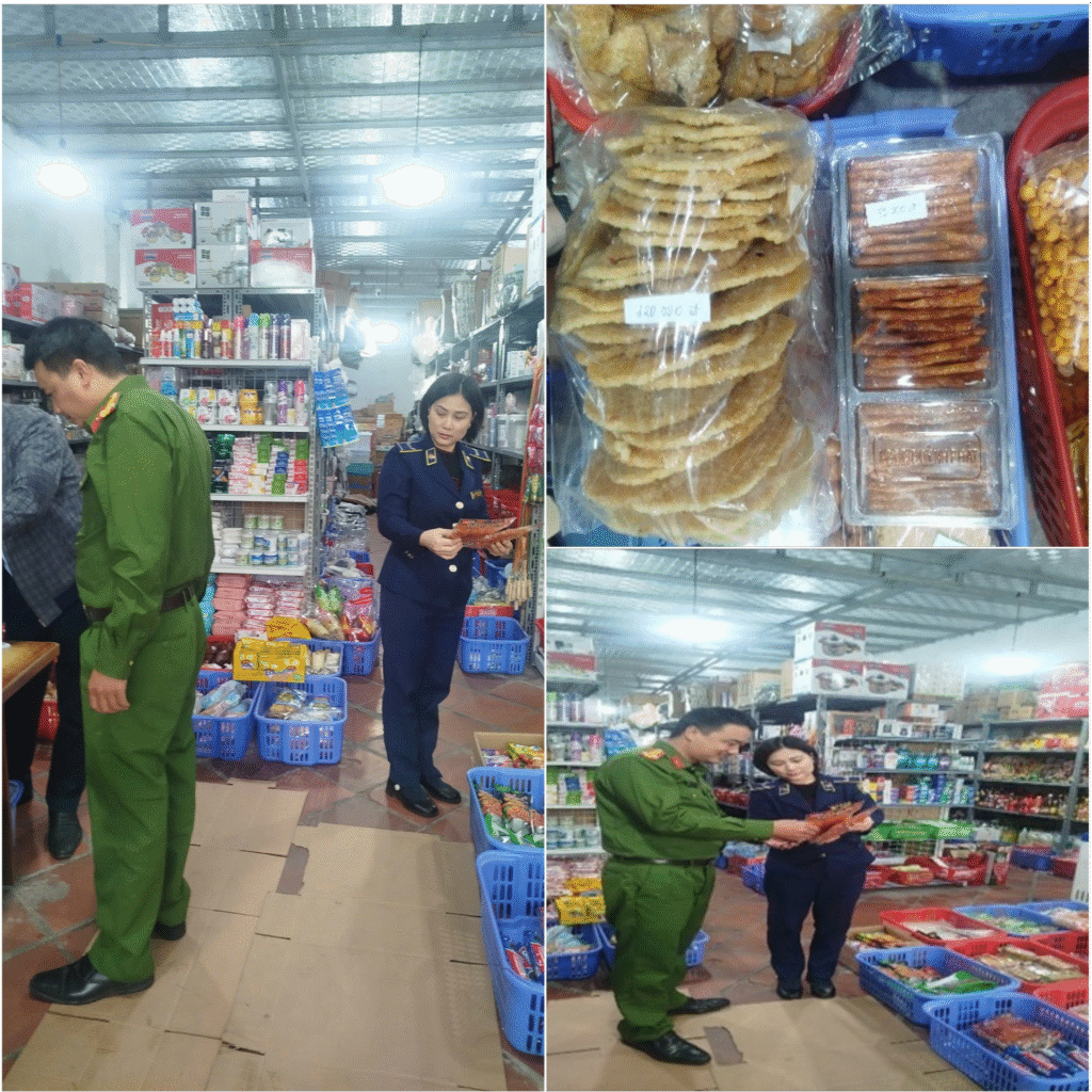 Ngày 03/11/2025, Đội QLTT số 12 đã phối hợp với Công an phường Đồng Văn kiểm tra đột xuất hộ kinh doanh H.K.D.H.T.L do bà H.T.L làm đại diện thuộc phường Đồng Văn, tỉnh Ninh Bình. Qua kiểm tra, phát hiện hộ kinh doanh đang bày bán nhiều thực phẩm như: Cơm cháy, Bỏng gạo, Quẩy, kẹo dẻo,… là hàng hoá không rõ nguồn gốc, xuất xứ và không đảm bảo an toàn vệ sinh thực phẩm.
