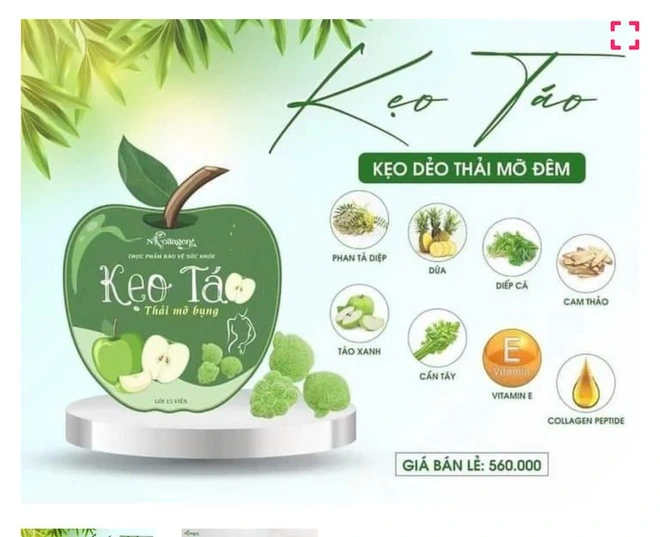 Cụ thể, sản phẩm Kẹo táo thải mỡ bụng do Công ty TNHH Xuất nhập khẩu N-Collagen phân phối độc quyền.