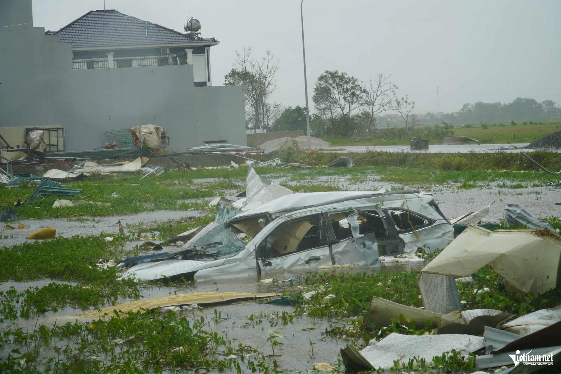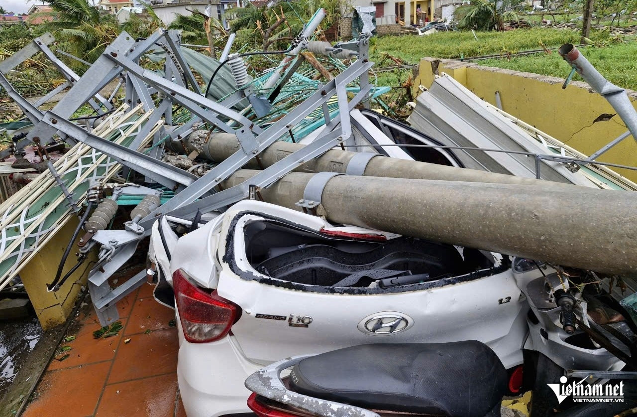 “Thời điểm đó, gió quá mạnh. Trong nhà vẫn nghe tiếng rít ghê rợn, kèm theo tiếng tường, mái ngói và mái tôn đổ sập liên hồi. Nhìn ra cửa sổ, tôi không thấy chiếc xe đâu. Ban đầu chỉ nghĩ là bị gió đẩy lệch đi đâu đó, không ngờ nó lại bị cuốn bay xa đến mức như vậy”, anh Dũng kể.