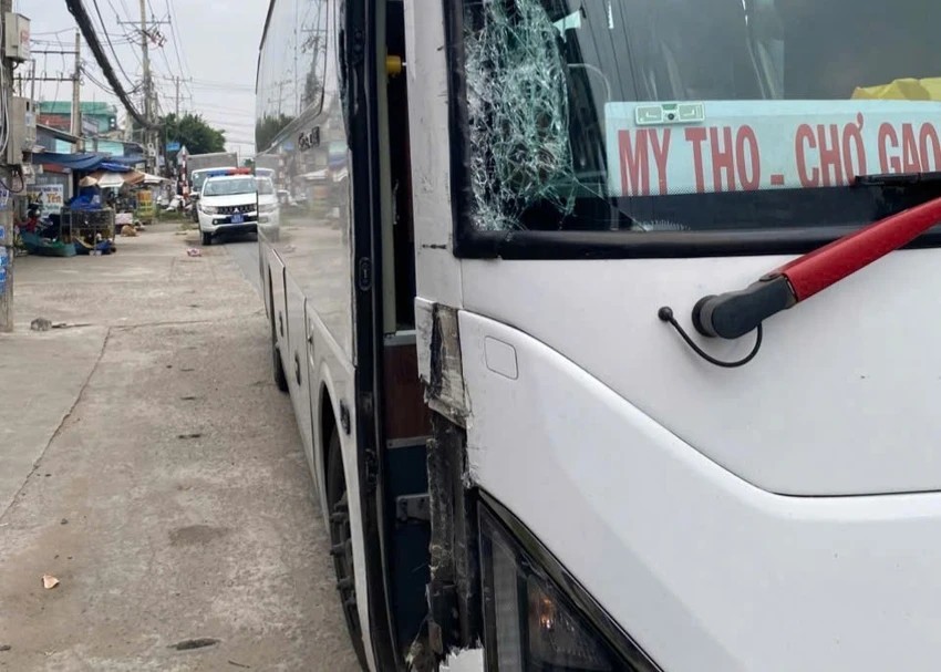 Theo nội dung đoạn clip, sự việc xảy ra vào khoảng 14 giờ 25 phút ngày 5-1 trên quốc lộ 50, đoạn gần cổng chào Mỹ Tho đi Chợ Gạo, thuộc ấp Tân Tỉnh B, phường Mỹ Phong, tỉnh Đồng Tháp. Thời điểm này, xe ô tô khách mang biển số 63G1-000.13, thuộc hãng xe HH (tỉnh Đồng Tháp), đang lưu thông theo hướng từ Mỹ Tho đi Chợ Gạo.
